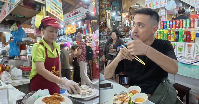 Theo đó, vị khách Tây này đã ghé chợ Bến Thành (TP.HCM) để thưởng thức bánh cuốn - một món ăn quen thuộc với người Việt nhưng lại khá mới mẻ với nhiều du khách quốc tế. Trong video, anh không giấu được sự hào hứng khi miêu tả hương vị của bánh cuốn: lớp bánh mỏng, mềm, nhân vừa miệng, ăn kèm nước chấm đậm đà. Vị khách liên tục nhấn mạnh rằng món ăn này "rất ngon" và là một trong những món anh đặc biệt yêu thích khi tới Việt Nam.