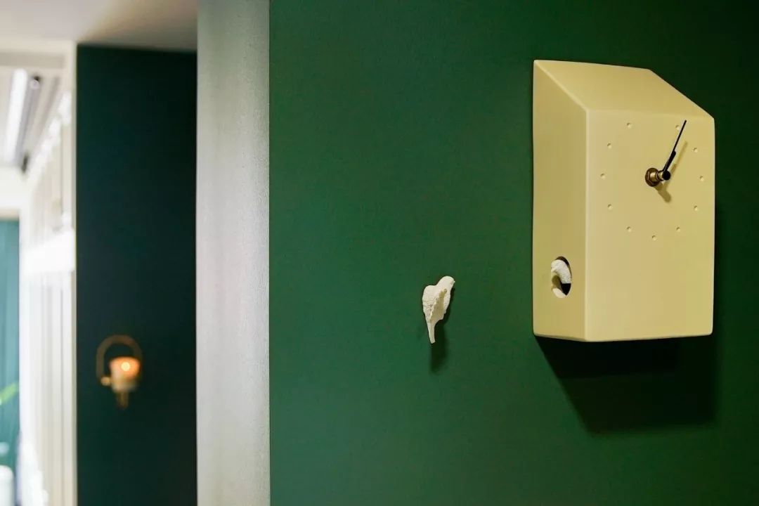 Lối vào và hành lang: điểm nhấn màu sắc. Khu vực tiền sảnh được sơn tông xanh ngọc lục bảo, màu sắc chủ đạo của cả căn hộ. Cách xử lý này giúp không gian trở nên nổi bật và có chiều sâu hơn.