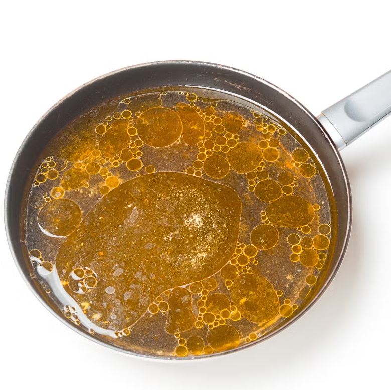 Hãy để nguội dầu mỡ, đổ vào hộp kín và bỏ thùng rác.