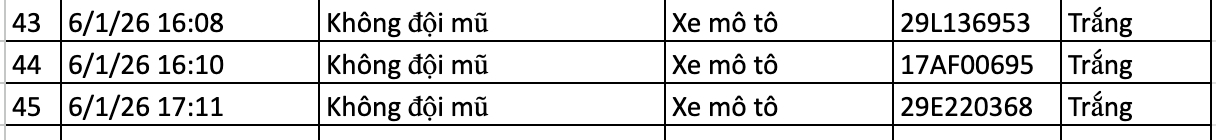 Tại nút giao thí điểm Phạm Văn Bạch - Hoàng Quán Chi, tính chung trong tuần, camera AI đã tự động nhận diện và ghi hình tổng cộng 65 trường hợp xe mô tô, xe gắn máy không chấp hành hiệu lệnh của đèn tín hiệu (vượt đèn đỏ) và 36 trường hợp người điều khiển phương tiện không đội mũ bảo hiểm. Đáng chú ý, ngày 09/01 ghi nhận sự chuyển biến tích cực về ý thức khi không phát hiện bất kỳ trường hợp nào vi phạm lỗi không đội mũ bảo hiểm.