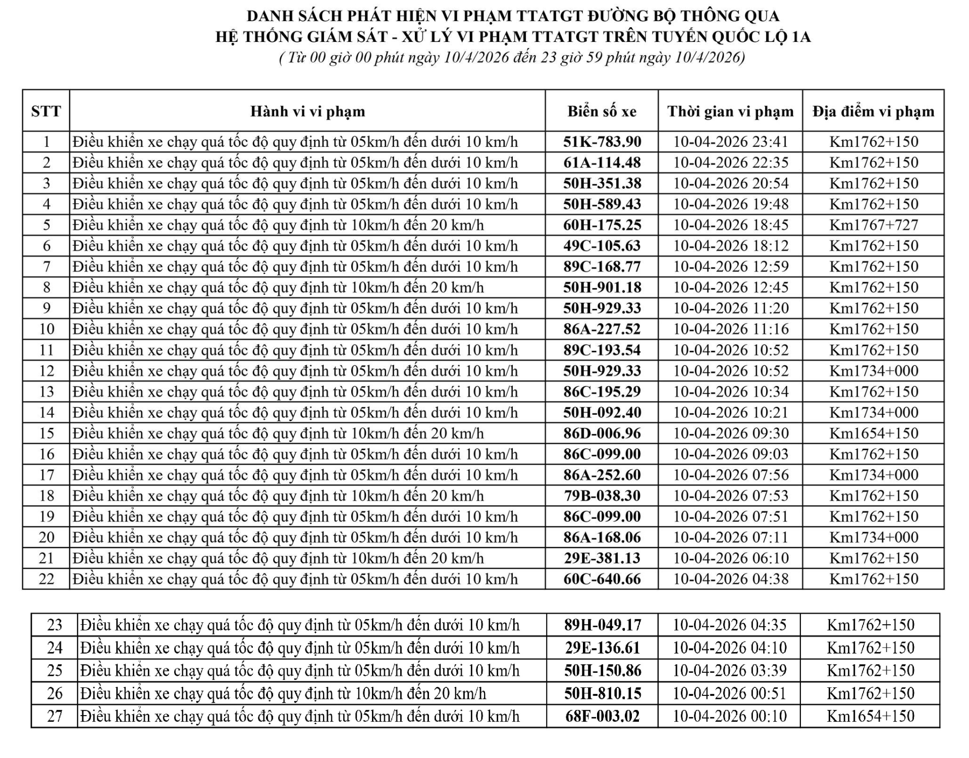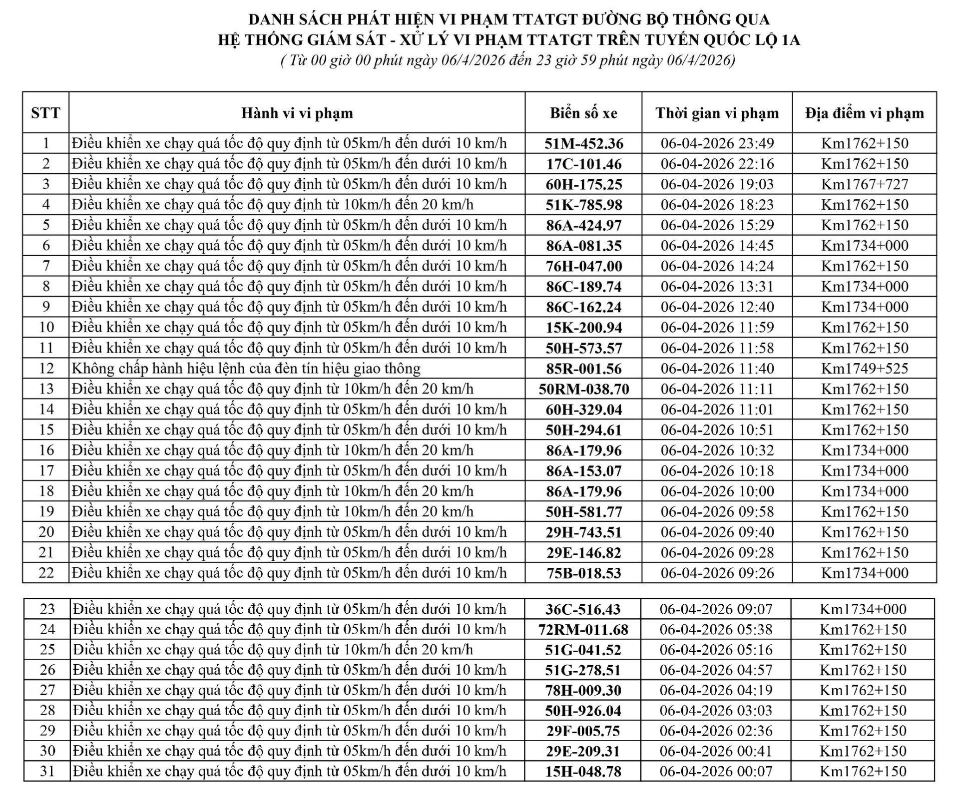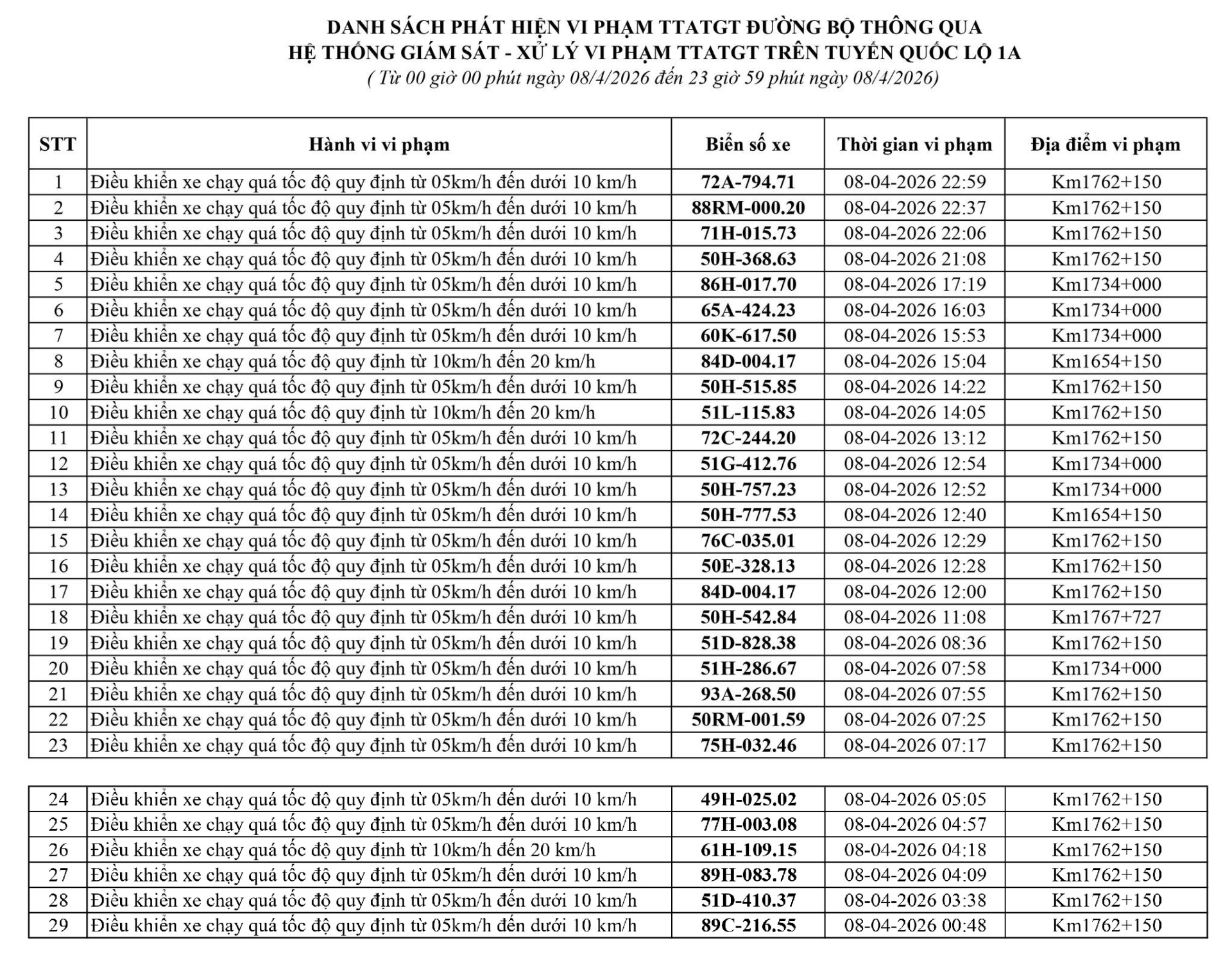 - 07-04-2026745 chủ xe chạy quá tốc độ có biển số sau nhanh chóng nộp phạt nguội theo Nghị định 168