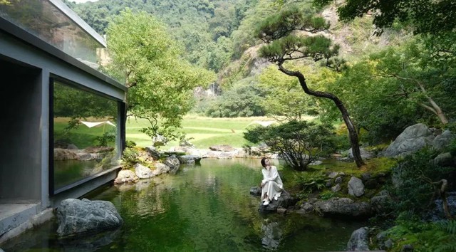 Bên trong khu vườn là không gian đa chức năng được tích hợp linh hoạt: khu uống trà, khu cắm trại, triển lãm đá, khu thác nước, ao cá, hòn non bộ... Đặc biệt, khu uống trà với nội thất mang phong cách phương Đông giúp con người giao hòa với thiên nhiên mà không cần bước ra ngoài.