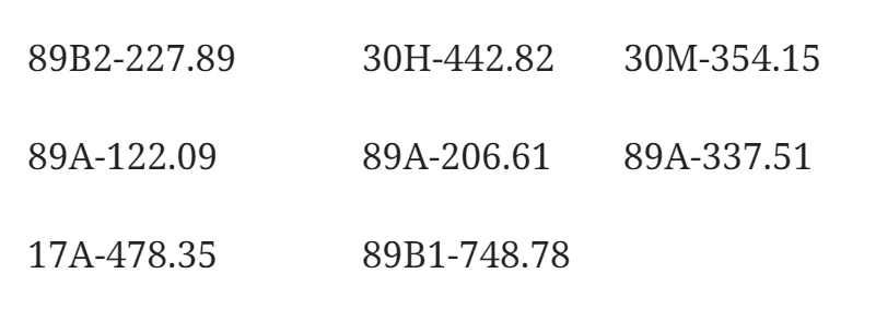 30L-366.22; 34R-041.79; 12A-176.01; 17R-010.82; 30G-985.92; 98A-279.16.