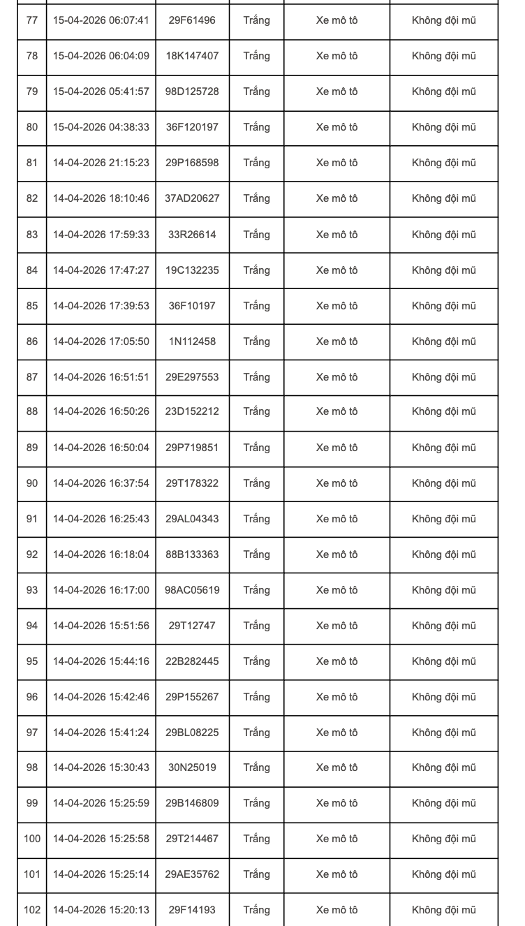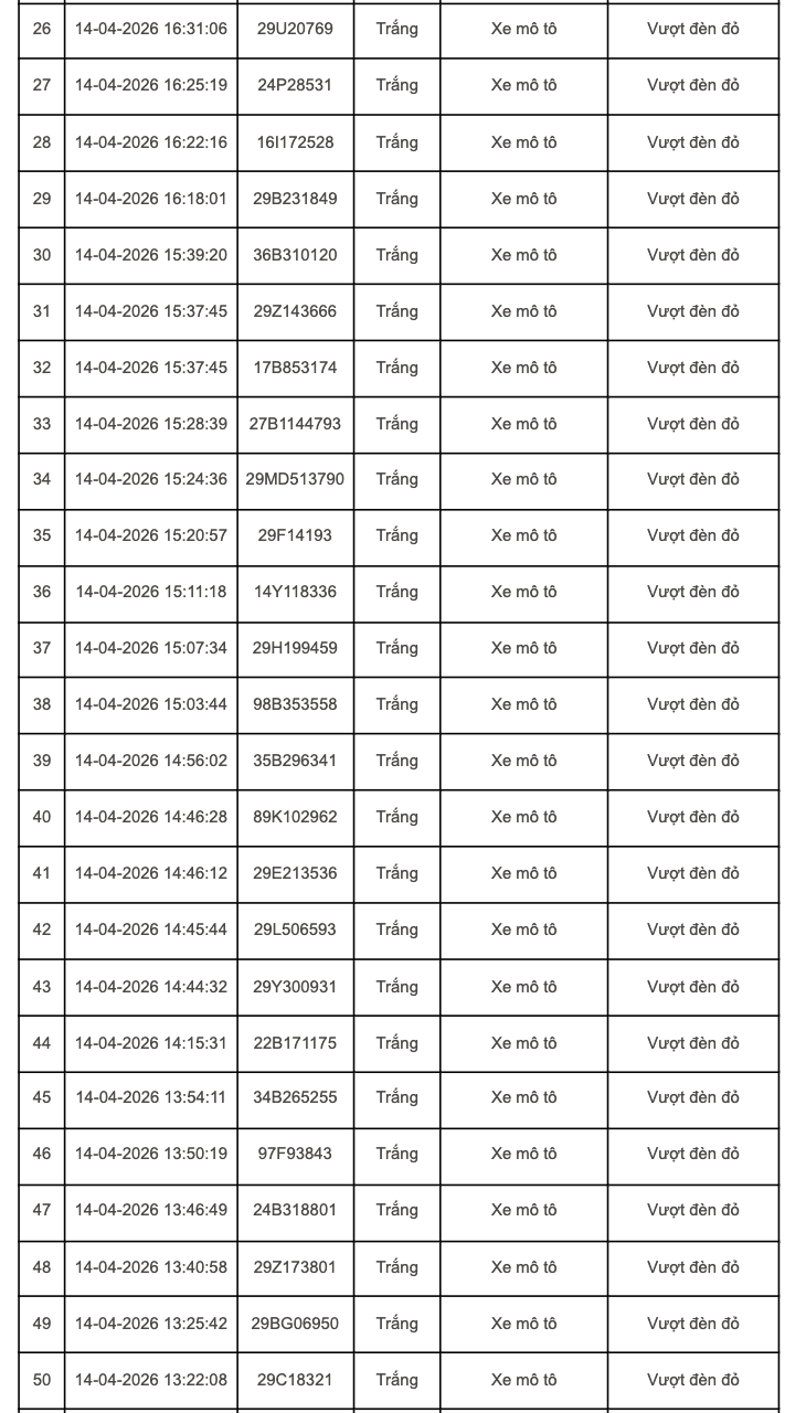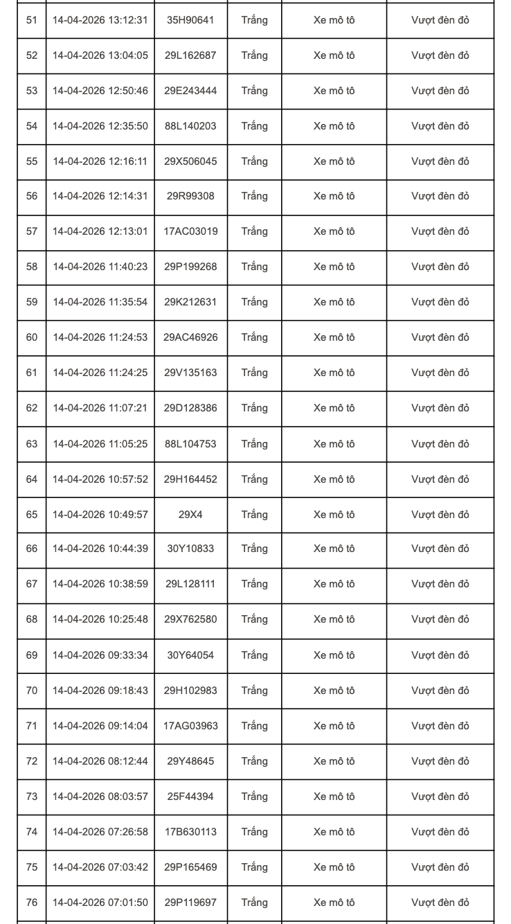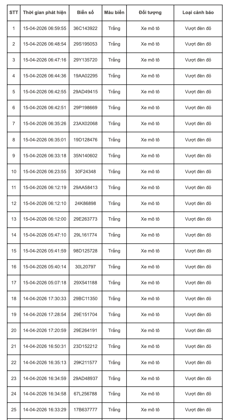 Các hành vi bị ghi nhận chủ yếu gồm: vượt đèn đỏ, không đội mũ bảo hiểm và chạy quá tốc độ. Đây đều là những lỗi phổ biến nhưng tiềm ẩn nguy cơ tai nạn cao, đang nằm trong nhóm bị tăng cường giám sát bằng công nghệ.