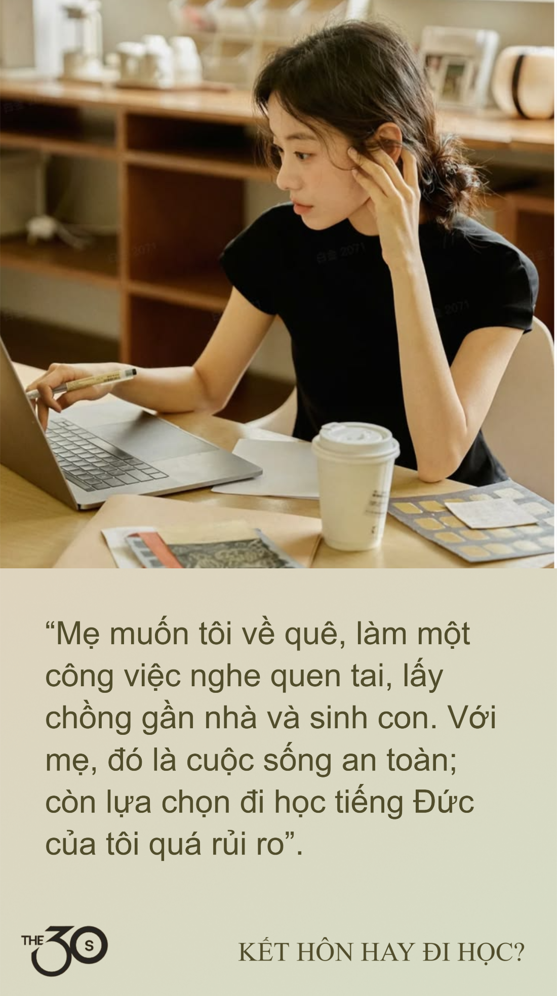 Khánh Linh (31 tuổi, sống ở Hà Nội) - nhân viên văn phòng - chọn Thạc sĩ Quản lý hành chính công. Cô độc thân, không anti việc kết hôn mà chỉ đơn giản là chưa gặp đúng người. Trong thời gian chờ gặp được người đó, cô trau dồi công việc và phát triển bản thân bằng cách đi học.