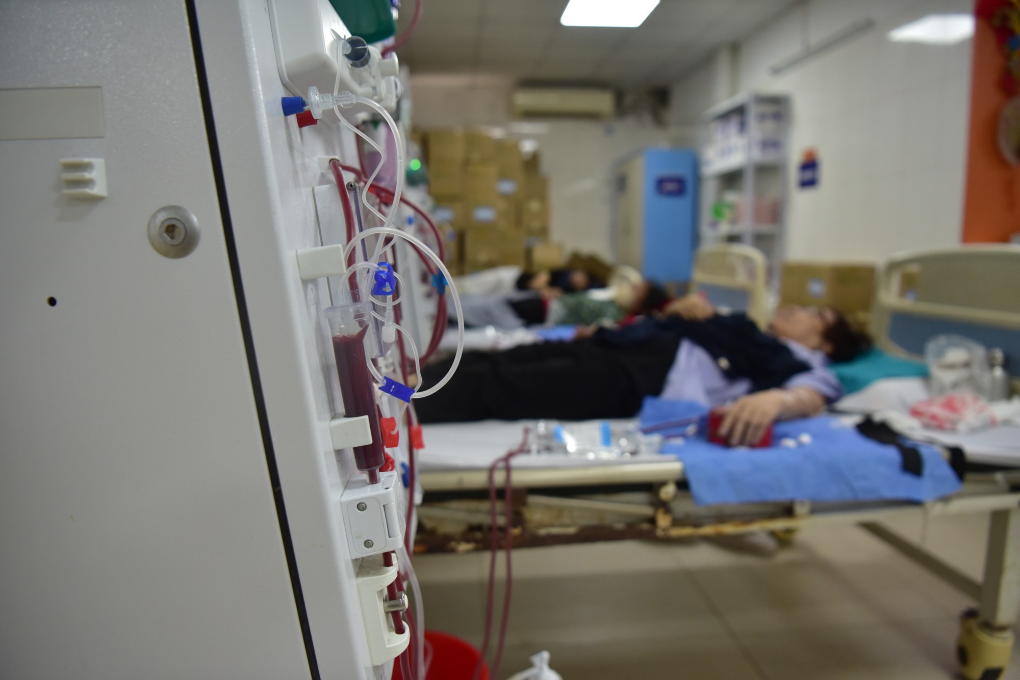 Bệnh nhân đang chạy thận nhân tạo (ảnh: N.M).