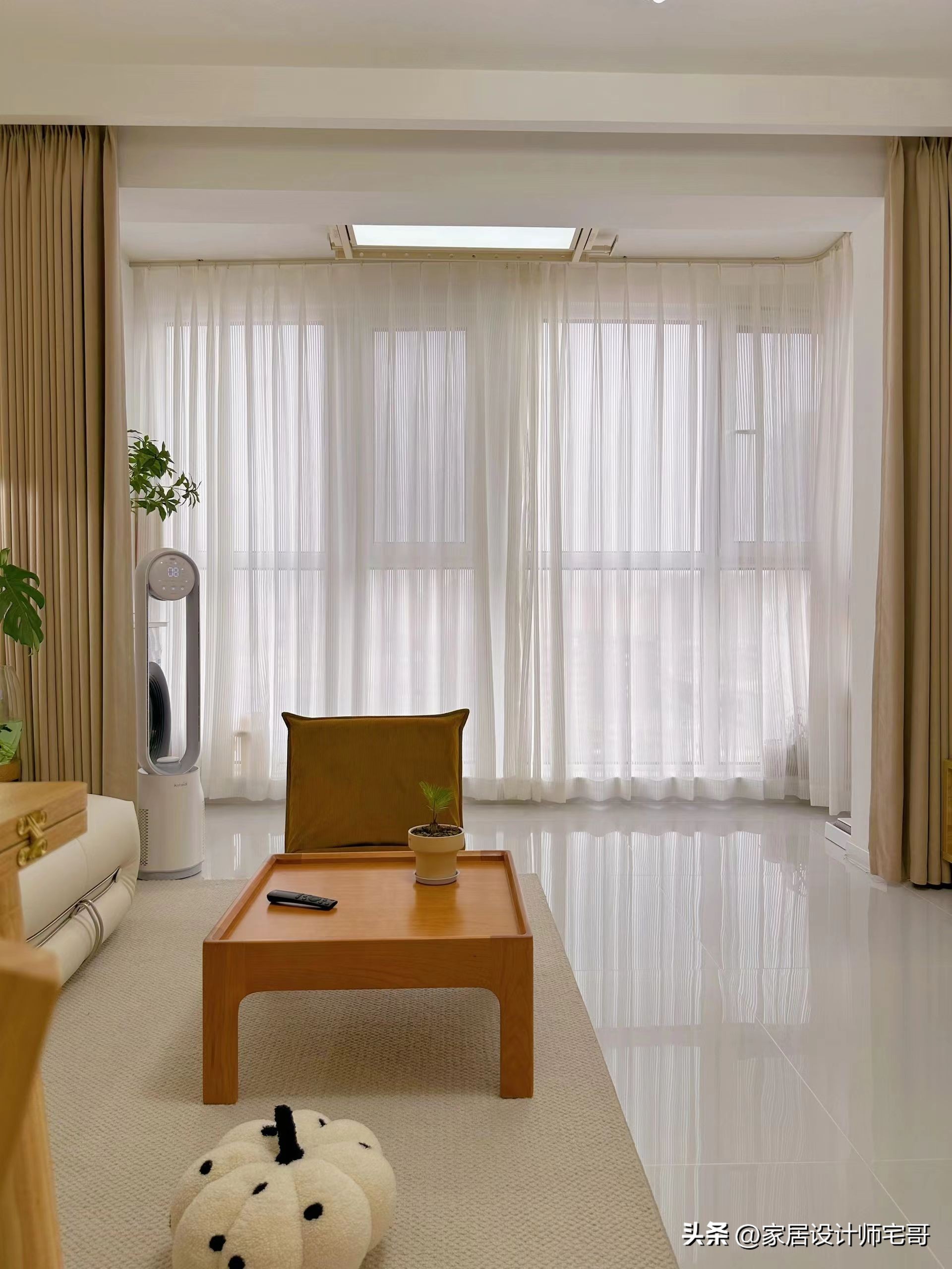 Chủ nhà đã tháo bỏ cửa trượt giữa phòng khách và ban công, giúp hai khu vực kết nối liền mạch. Nhờ vậy, ánh sáng tự nhiên tràn vào nhiều hơn, tạo cảm giác căn hộ rộng rãi và dễ chịu.