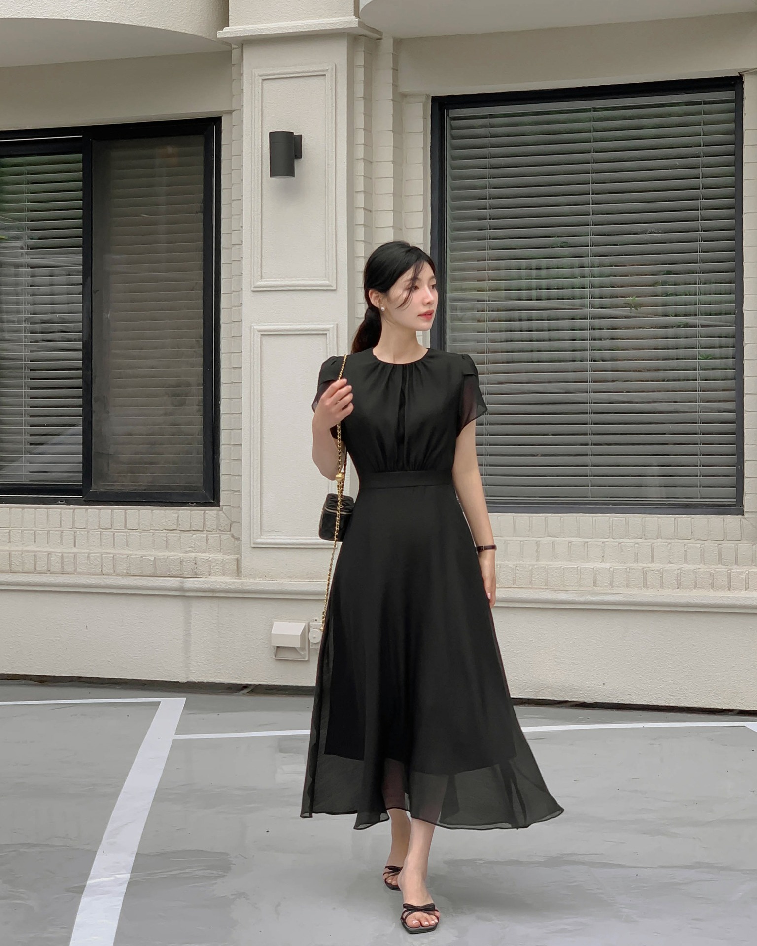 Một chiếc váy dài nhấn eo luôn là lựa chọn "an toàn" mà hiệu quả cho môi trường công sở. Thiết kế nhấn eo giúp tôn dáng rõ rệt, trong khi phần chân váy dài mang lại sự kín đáo, thanh lịch.