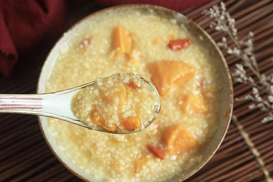 Một bát cháo khoai lang và kê là bữa sáng ấm áp nhất trong mùa đông! Kê tốt cho lá lách và dạ dày; trong khi khoai lang giàu chất xơ và pectin, có thể thúc đẩy nhu động ruột và làm chậm sự tăng đường huyết, đặc biệt tốt cho cơ thể. Cháo nấu chín có vị ngọt, mềm và ấm, mang lại cảm giác dễ chịu từ dạ dày đến tim.