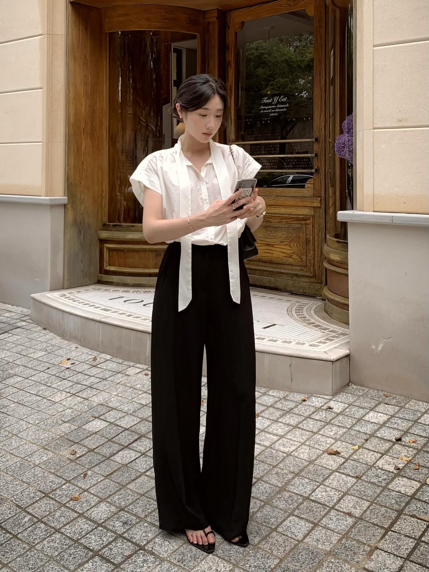 Nếu phải chọn một item "an toàn mà vẫn sang", quần âu màu đen chắc chắn đứng đầu danh sách. Khi mix cùng áo trắng, bộ đôi này tạo nên tổng thể thanh lịch, chỉn chu và không bao giờ lỗi mốt. Đây là lựa chọn hoàn hảo cho môi trường công sở hoặc những dịp cần sự trang trọng.
