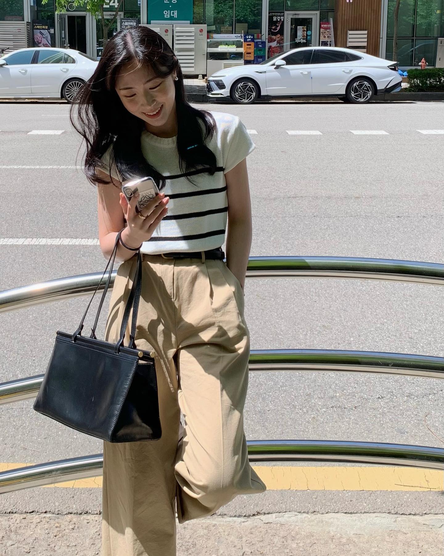 Một mẹo nhỏ là chọn quần có chất vải dày dặn và đứng form. Bạn có thể tạo điểm nhấn bằng phụ kiện như túi xách, giày hoặc thắt lưng màu đen, nâu hoặc pastel để outfit không bị quá đơn điệu. Đây là lựa chọn hoàn hảo cho những ai yêu thích phong cách tối giản nhưng vẫn muốn gây ấn tượng.