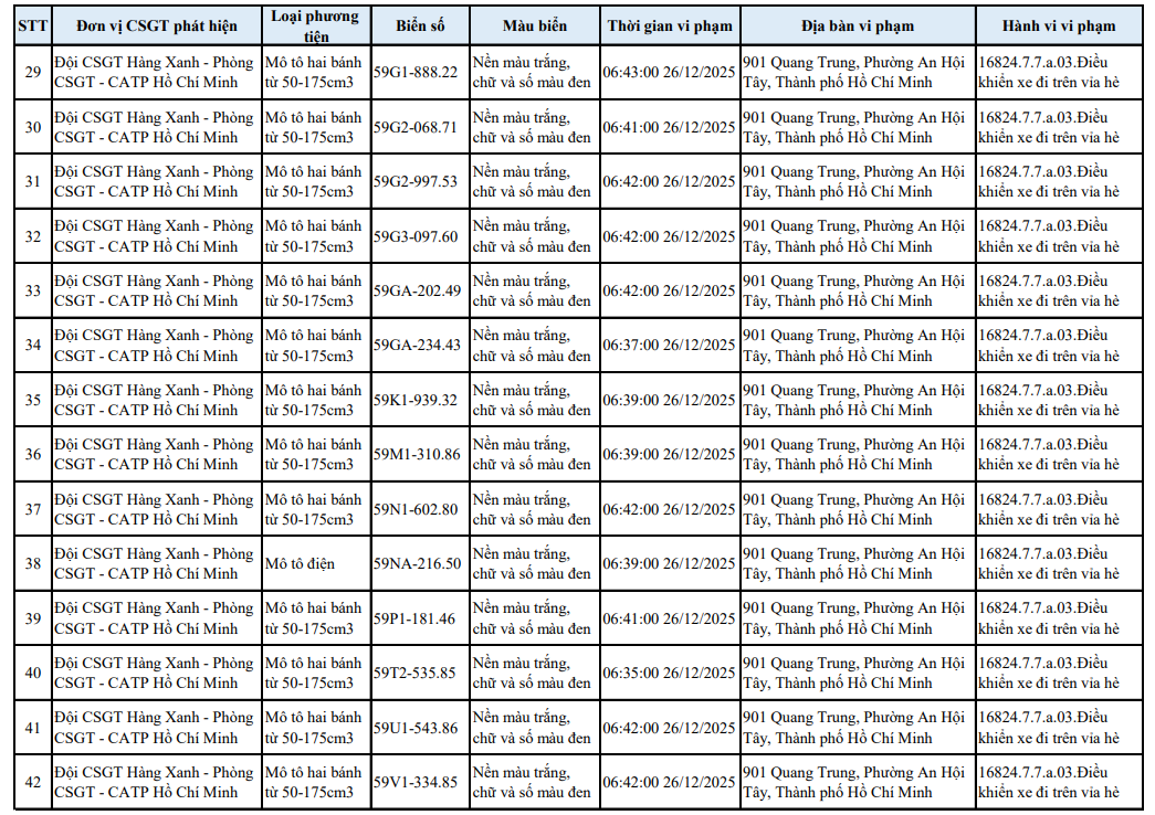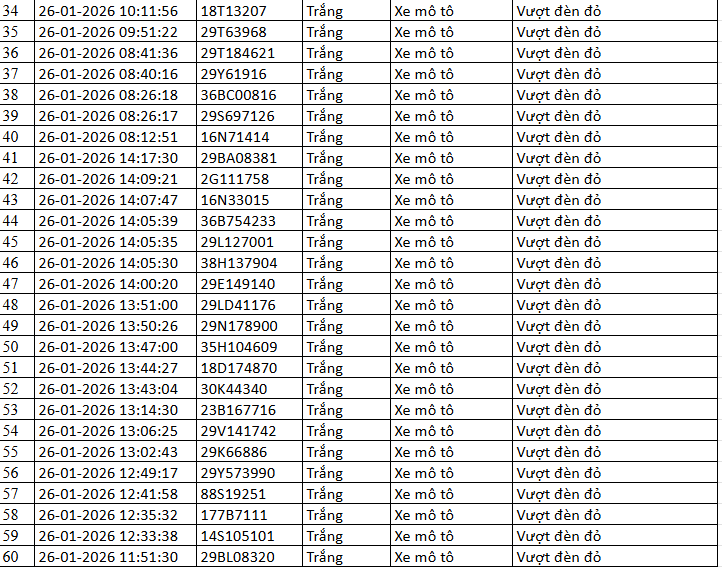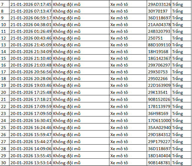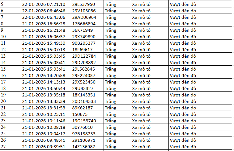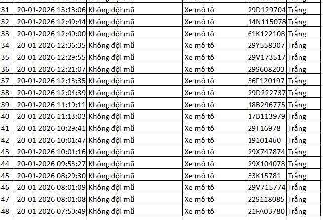Từ 12h00’ ngày 20/1/2026 đến 12h00’ ngày 21/1/2026, đã phát hiện 42 trường hợp xe máy vi phạm.