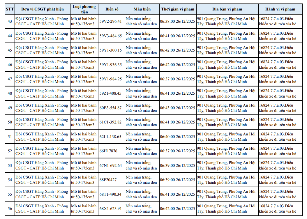 - 20-01-2026243 chủ xe máy có biển số sau nhanh chóng nộp phạt nguội theo Nghị định 168