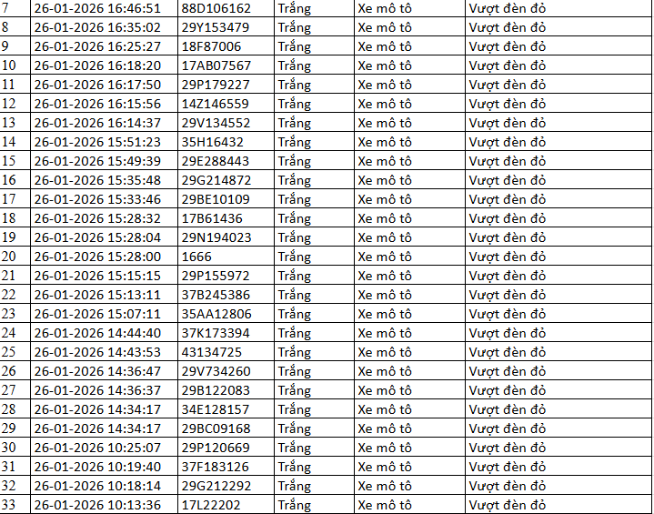- 22-01-2026118 chủ xe quá tốc độ, vượt đèn đỏ có biển số sau nhanh chóng nộp phạt nguội theo Nghị định 168