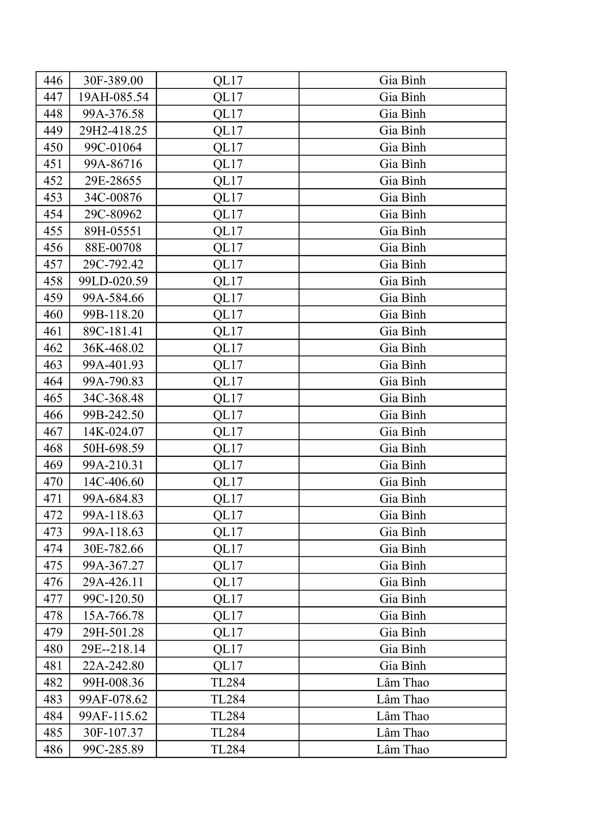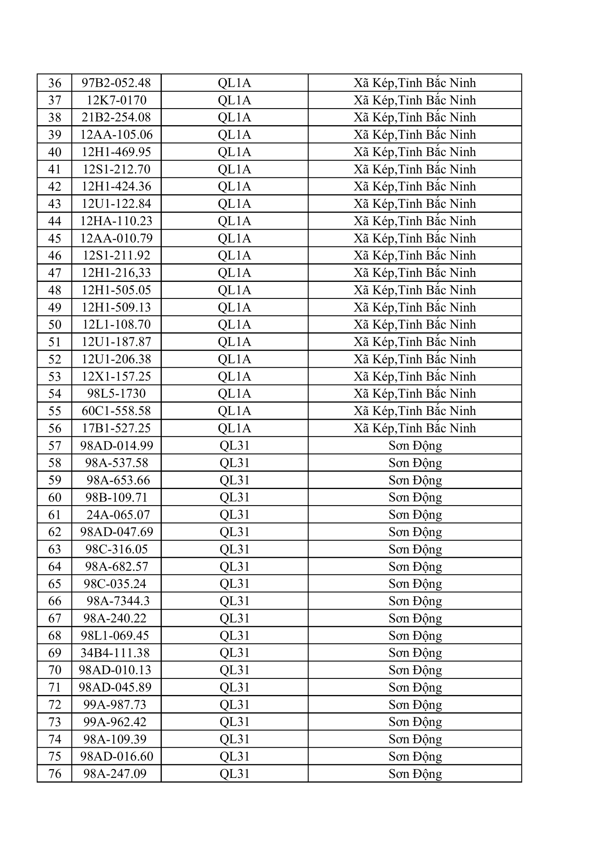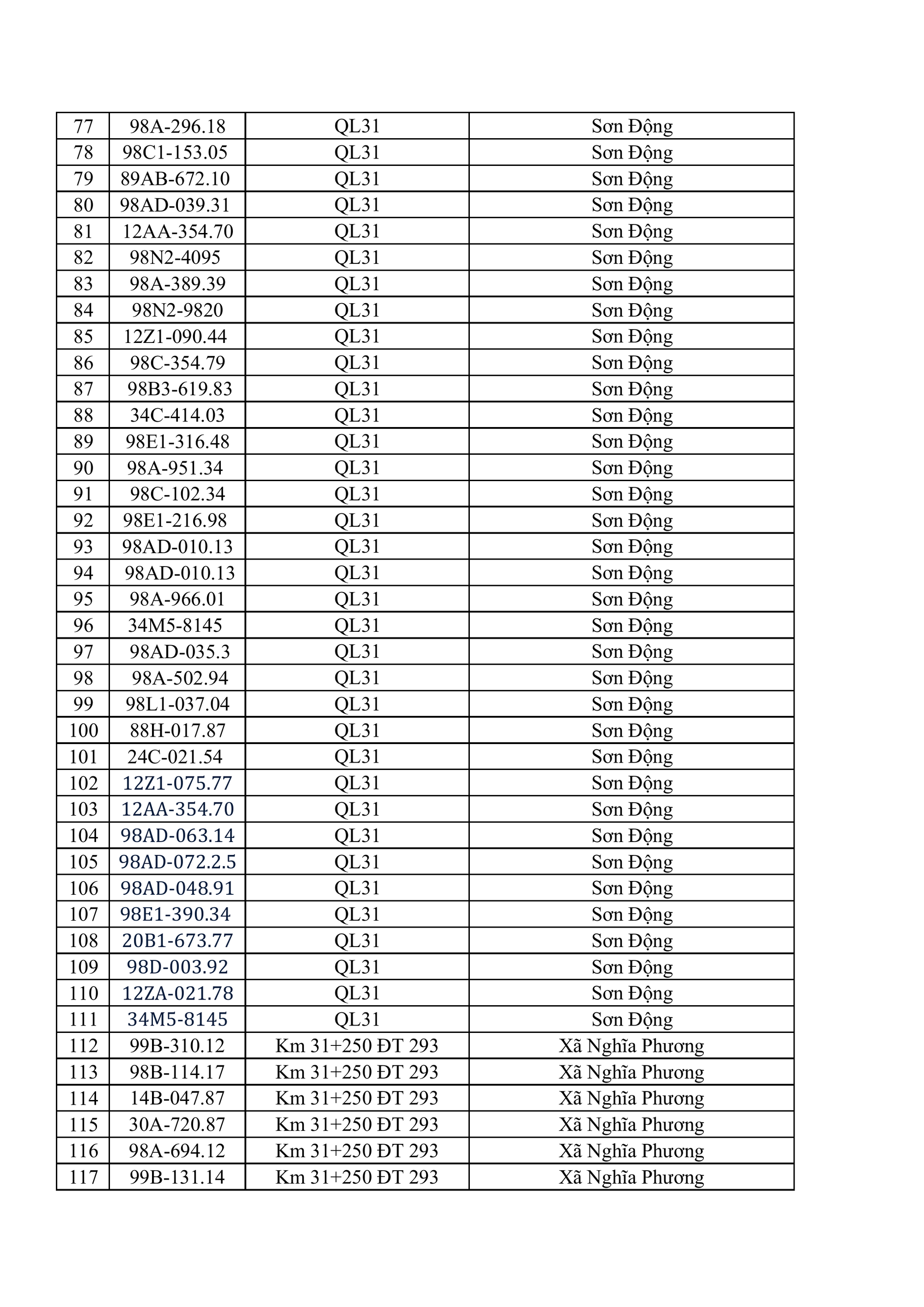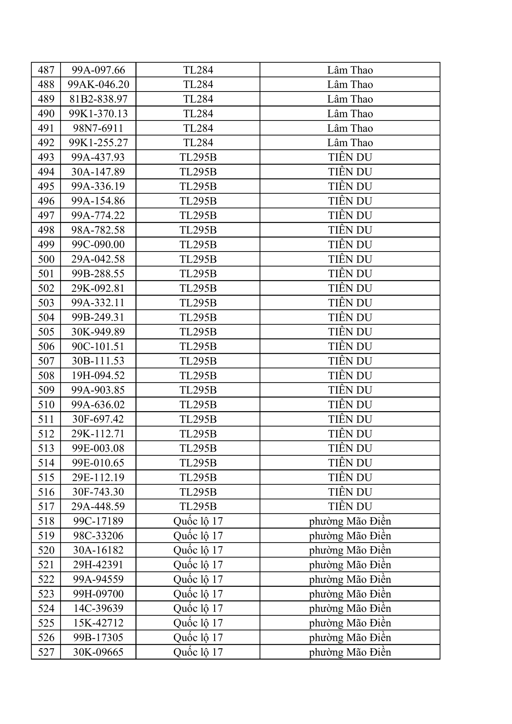 Các chủ xe có trong danh sách dưới đây nhanh chóng liên hệ để nộp phạt nguội theo quy định.
