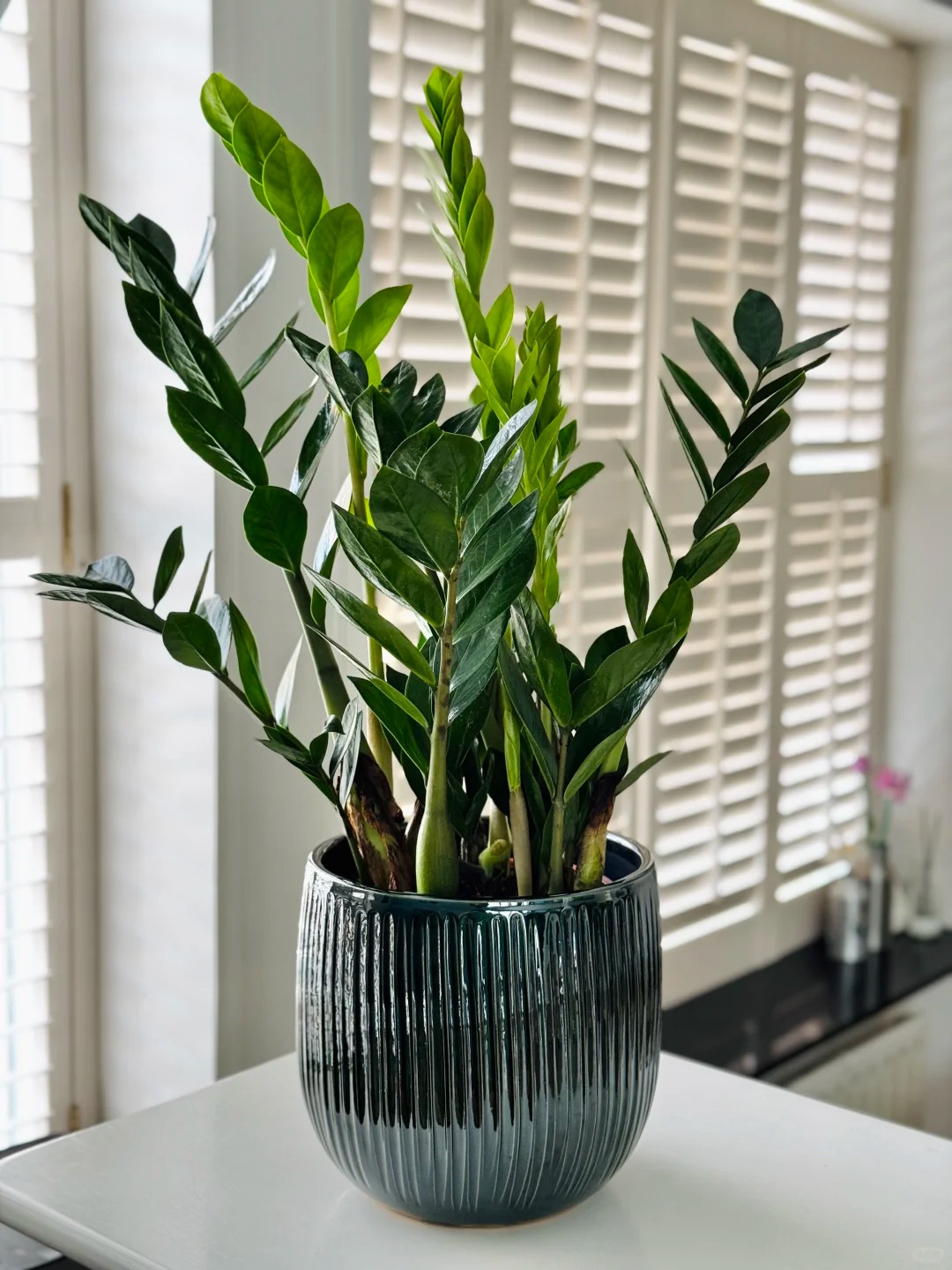 Cây kim tiền có hình dạng nhỏ gọn, lá dày và bóng, không cần nhiều không gian và rất bền. Nó lọc được toluene (có trong sơn, chất kết dính, và mực in). Nếu trong nhà bạn có máy in hoặc không gian làm việc, đây là người bạn đồng hành tốt.