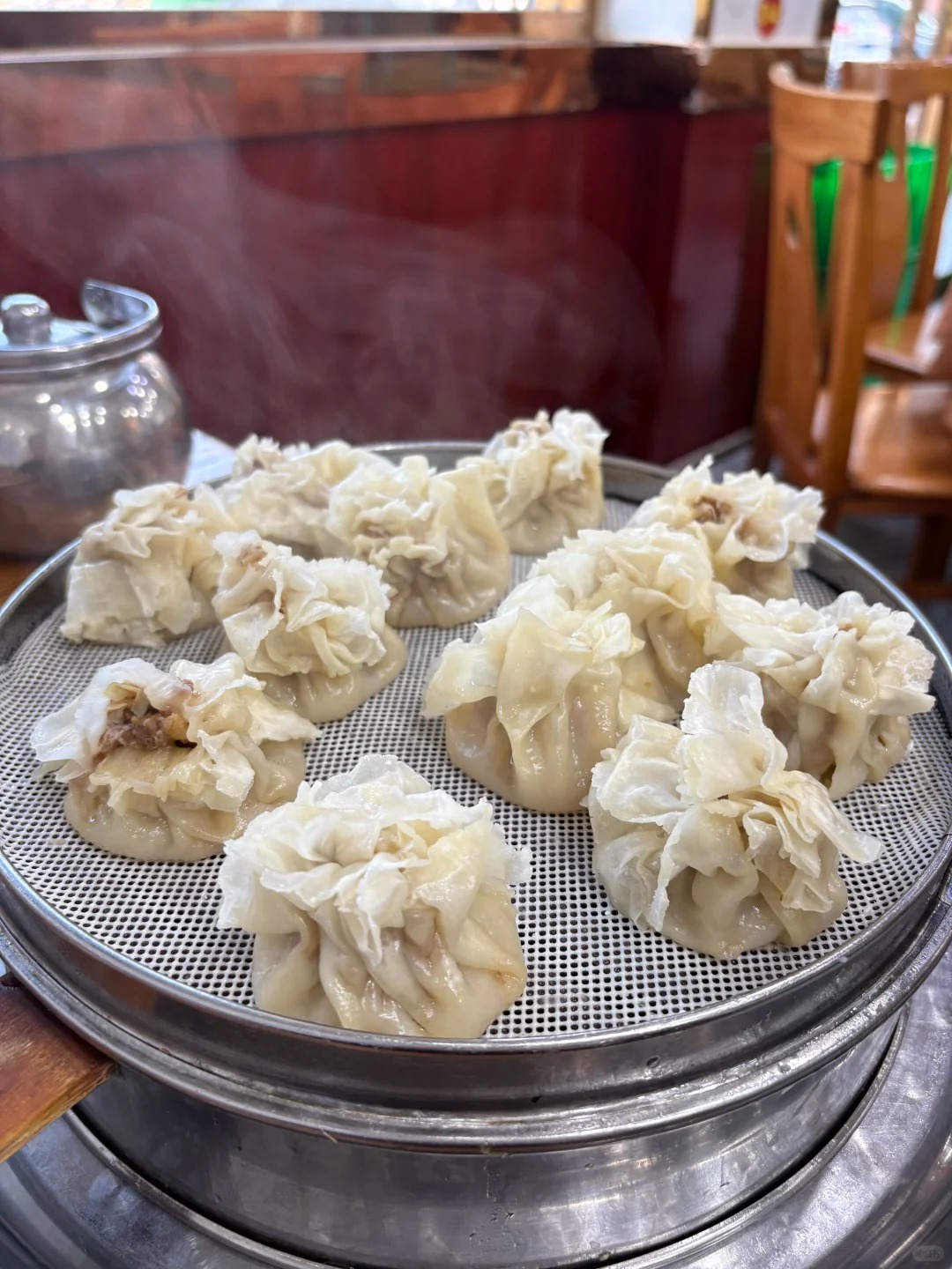 Tinh túy của món này nằm ở nghệ thuật nhào bột bằng nước sôi, thợ khéo tay dùng thanh cán chày gỗ miết ra đúng 18 nếp gấp đều tăm tắp. Nhân bên trong là thịt cừu tươi rói, quết cùng nước hoa tiêu, hành gừng cho đến khi dẻo quánh. Khi hấp chín, lớp vỏ mỏng như cánh ve ôm trọn khối thịt, cắn một miếng là nước ngọt tứa ra, thịt cừu thơm béo mà không hề bị hoi. Buổi sáng se lạnh, nhón một viên xíu mại, húp thêm ngụm cháo kê vàng óng, bạn sẽ hiểu thế nào là sự tận hưởng tao nhã của người Sơn Đông.