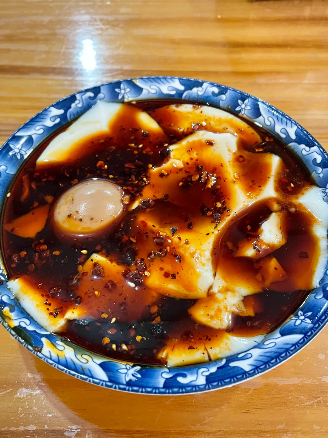 Nếu người miền Nam có tàu hũ nước đường thanh mát, người miền Bắc có tào phớ chan nước gừng, thì người Liêu Thành có món "đậu phụ nẹp tre" mặn mà, đầy khí chất đường phố. Đây là món ăn sáng mang tính biểu tượng của khu phố Đông Quan. Đậu nành bản địa được ngâm nấu cùng nguồn nước hồ Đông Xương, điểm bằng thứ nước lựu lâu năm thay vì dùng thạch cao, ủ ròng rã 8 tiếng để tạo ra những tảng đậu thơm lừng, thanh khiết.