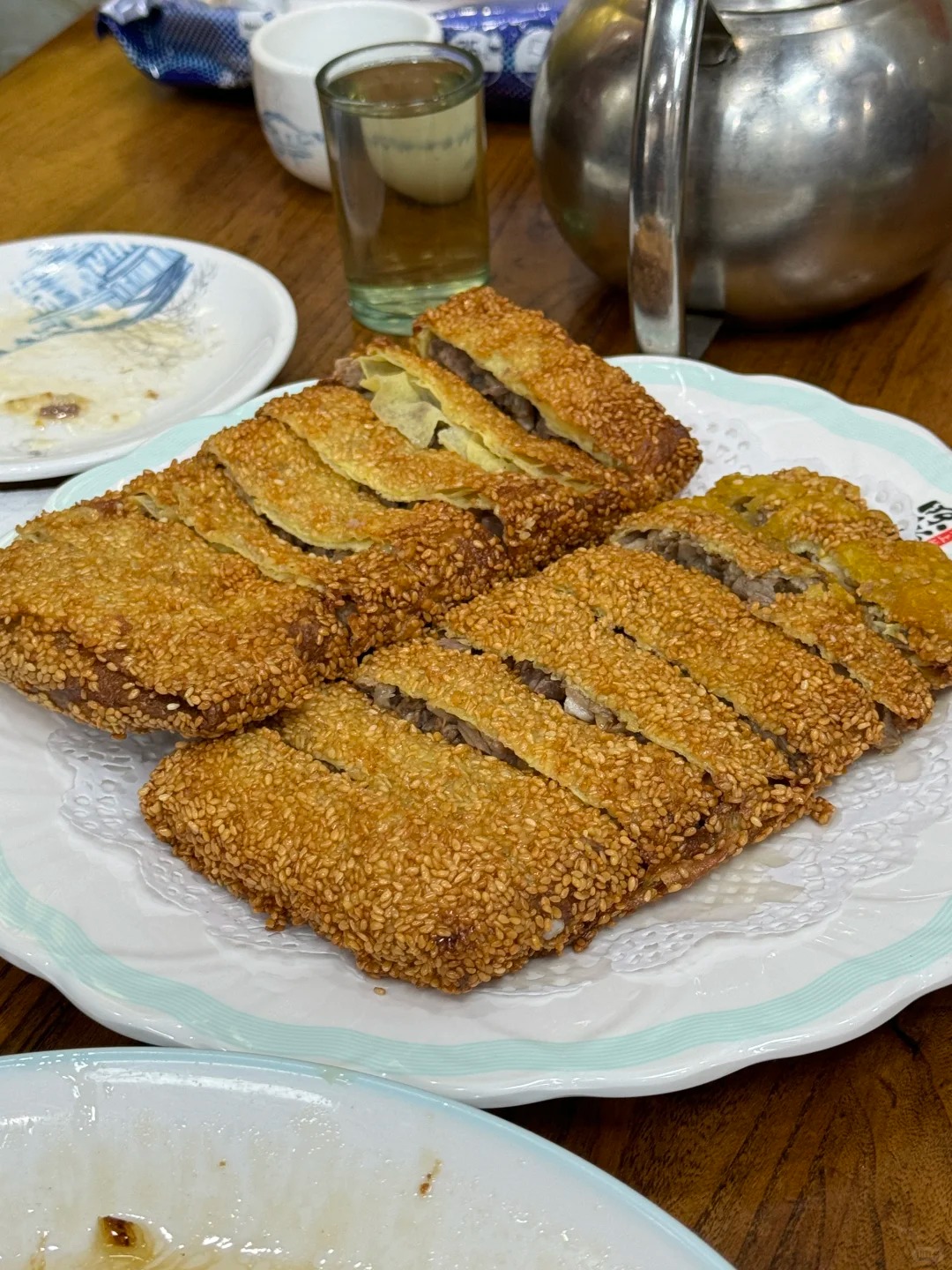 Cách ăn chuẩn nhất của người bản địa là... nhét nguyên chiếc quẩy chiên này vào giữa một chiếc bánh nướng vừng. Cái xốp mềm của bánh nướng ôm trọn cái giòn tan của quẩy, tạo nên một bản giao hưởng của "tinh bột", nhấp thêm ngụm sữa đậu nành nóng hổi. Đơn giản, rẻ tiền nhưng sự thỏa mãn mà nó mang lại thì đúng là không gì sánh kịp.