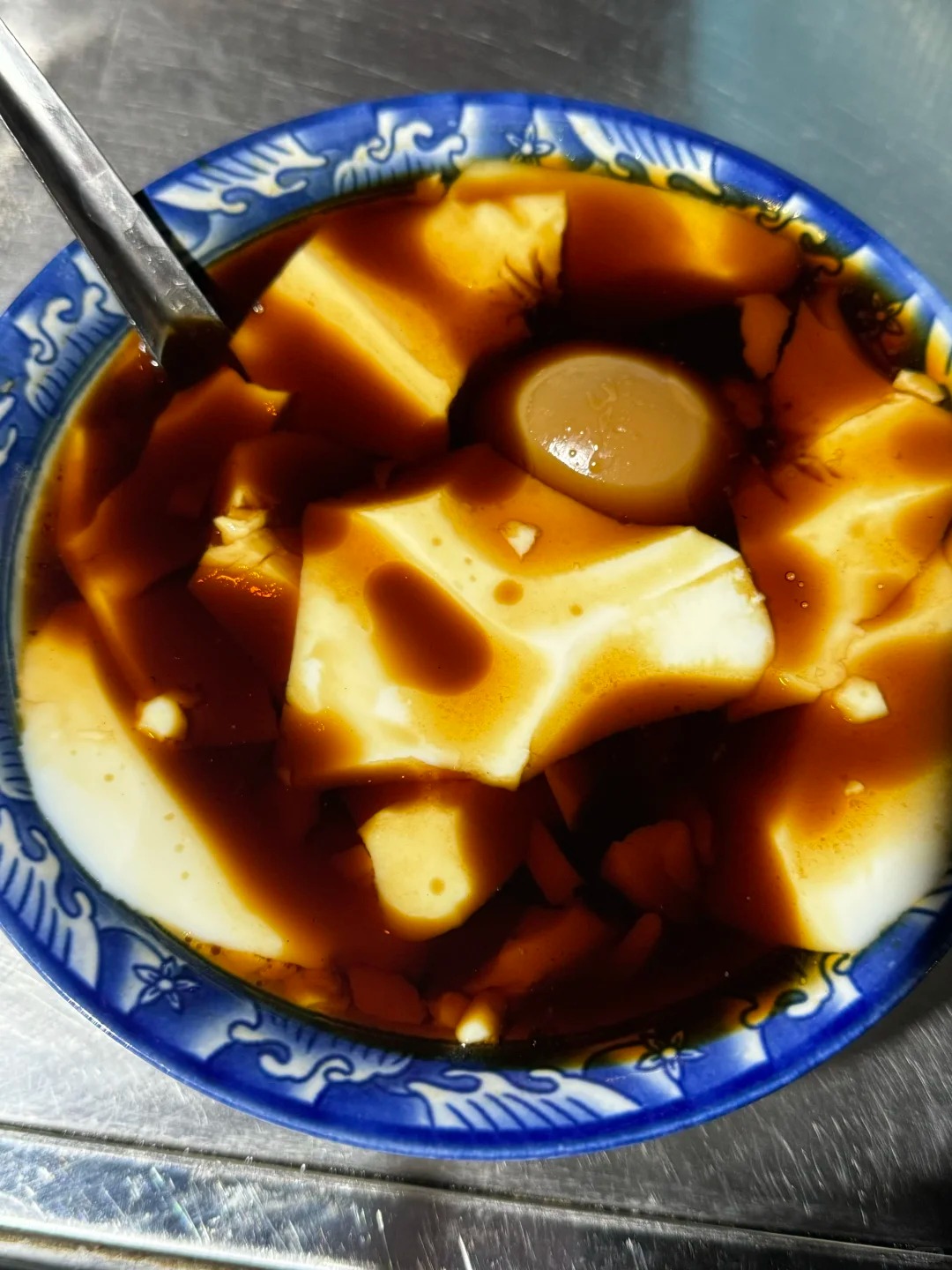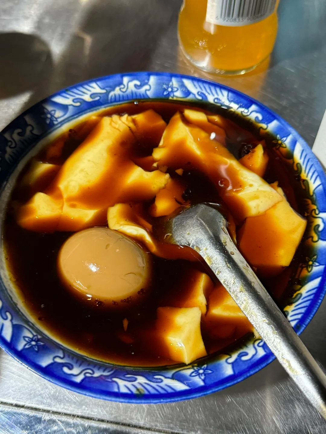 Đậu mềm mượt trôi tuột xuống cổ họng, để lại hậu vị mặn ngọt, cay tê vô cùng nịnh miệng. Dân sành ăn phải xé thêm một chiếc bánh nướng viền nướng giòn rụm, cắn thêm quả trứng ngâm tương, chừng ấy thôi là đủ năng lượng cày cuốc cho cả một ngày dài.