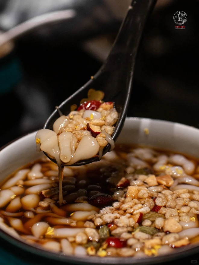 Gạo lúa sớm ngâm qua đêm, xay mịn thành bột nước, nấu sệt cùng chút nước vôi trong rồi cho qua rây rớt xuống chậu nước lạnh. Những "chú tôm" bột gạo trơn tuột, dai dẻo này được múc vào bát, chan ngập nước đường đỏ nấu keo lại, rắc thêm xíu hoa mộc tê. Ở Nghi Xương, người ta không chỉ ăn món này vào mùa hè để giải nhiệt, mà buổi sáng mùa đông cũng chuộng ăn ở nhiệt độ thường.