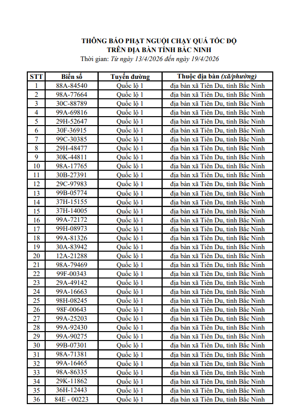 Cơ quan chức năng đề nghị các chủ phương tiện, người vi phạm chủ động tra cứu thông tin và sớm chấp hành việc xử lý theo quy định. Đồng thời, người dân được khuyến cáo cần tuân thủ nghiêm quy định về tốc độ, chú ý quan sát hệ thống biển báo và điều khiển phương tiện an toàn, nhằm hạn chế nguy cơ tai nạn và góp phần đảm bảo trật tự, an toàn giao thông trên địa bàn.