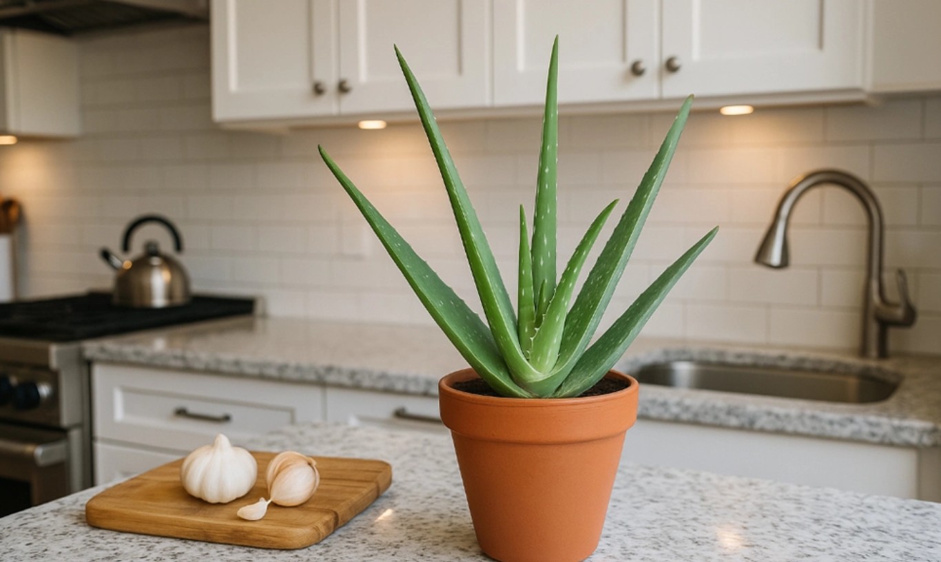 Tại phòng bếp, nơi có độ ẩm cao, gia chủ có thể cân nhắc trồng những loại cây ít rụng lá, dễ vệ sinh. Cây lô hội phù hợp đặt trong khu vực bếp nhờ ưu điểm dễ sống, ưa sáng nhẹ và không cần tưới thường xuyên. Chúng có thể được đặt trên kệ gần chậu rửa, góc cửa sổ hoặc mặt bàn thoáng khí. Bên cạnh khả năng lọc không khí, phần gel bên trong lá lô hội còn có thể sử dụng để làm dịu bỏng nhẹ, phù hợp với tính chất sử dụng của không gian nấu nướng.