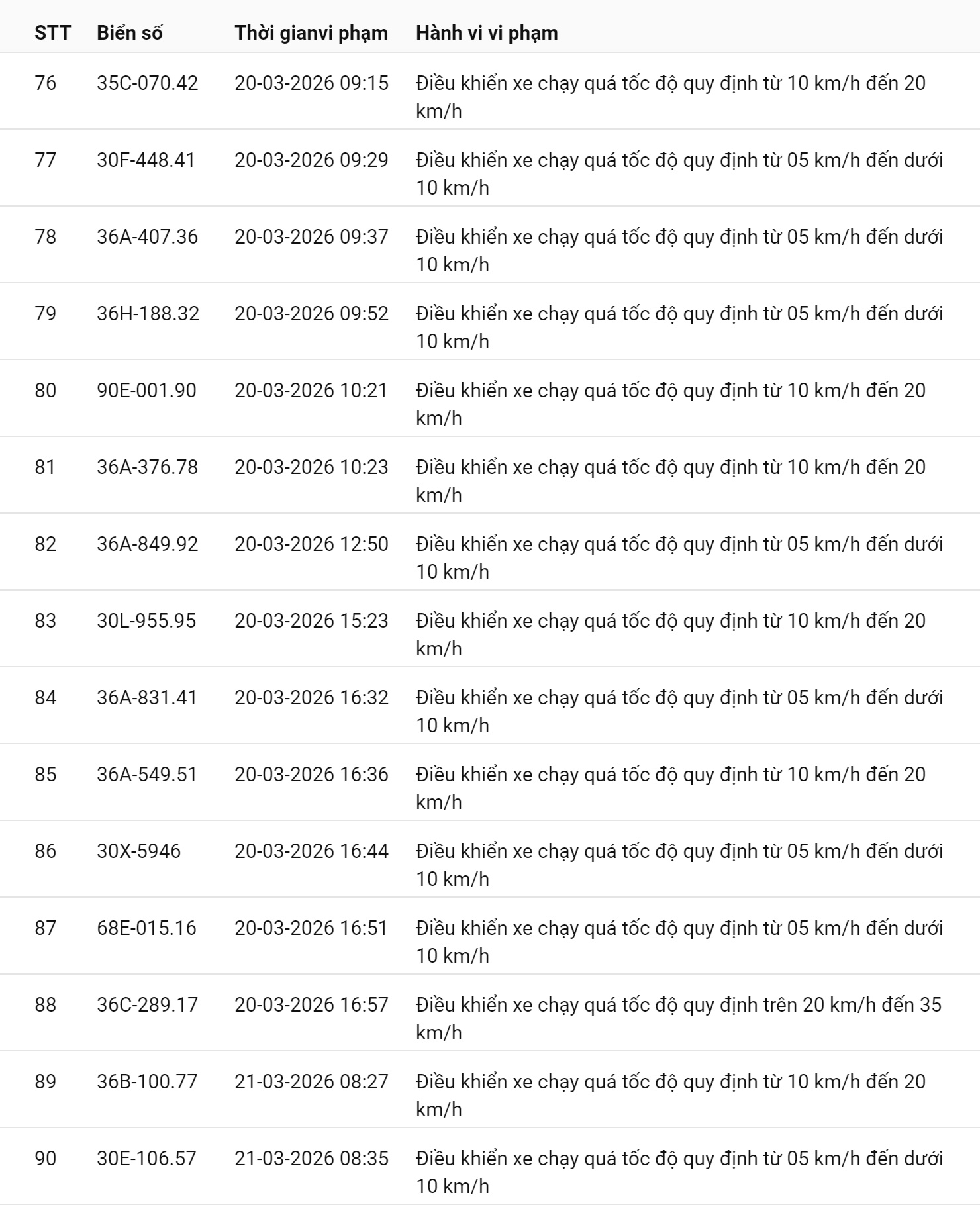 - 21-04-2026611 chủ xe chạy quá tốc độ có biển số sau nhanh chóng nộp phạt nguội theo Nghị định 168