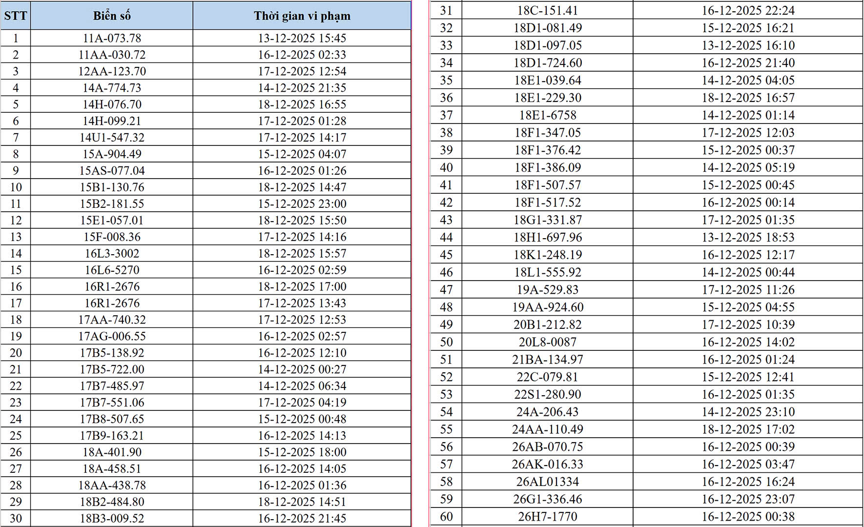 Mới đây, Phòng Cảnh sát giao thông nhiều tỉnh, thành công bố danh sách các phương tiện vi phạm qua trích xuất dữ liệu từ camera A.I và qua hệ thống camera giám sát giao thông và thiết bị kỹ thuật.