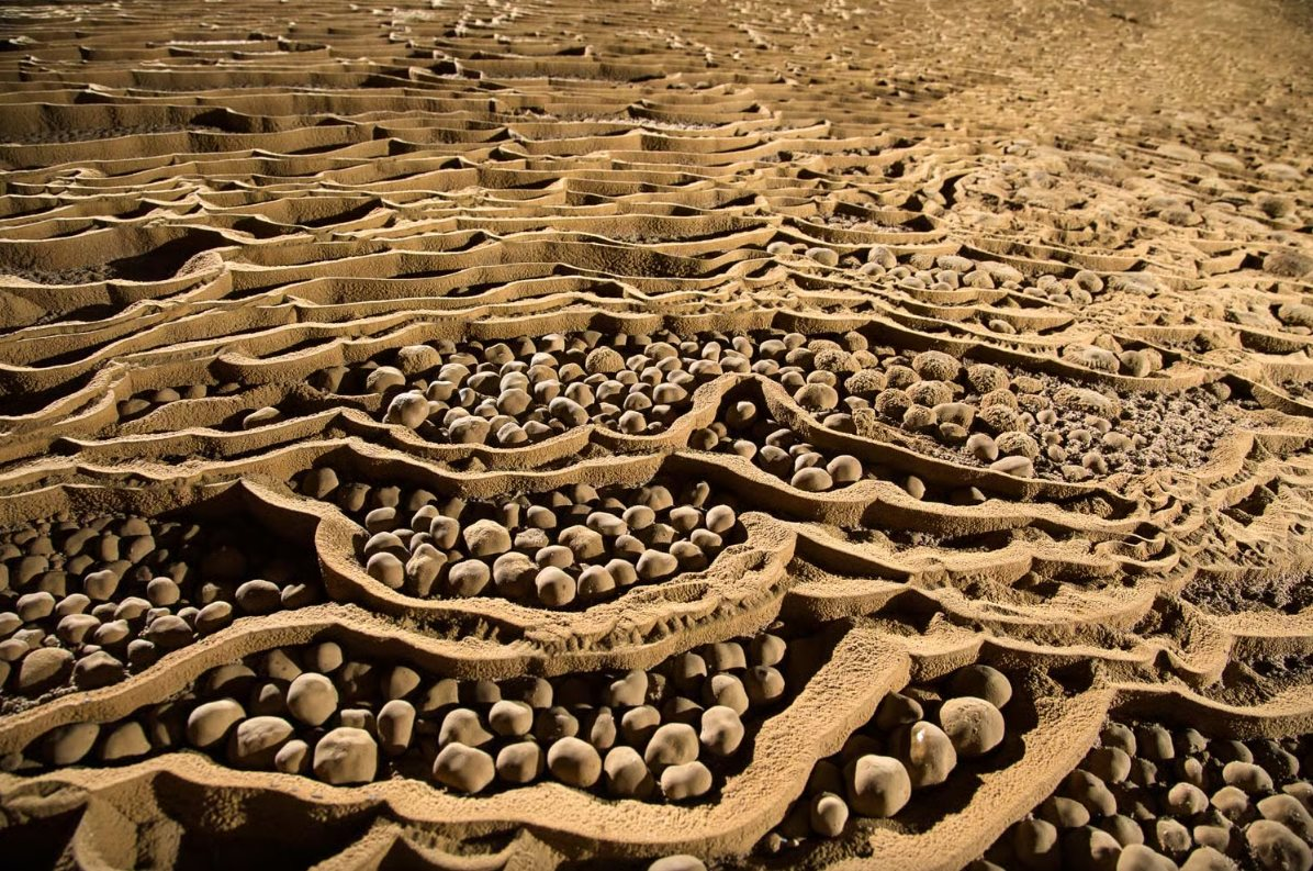 Ngọc động - những viên đá can-xi được hình thành từ những giọt nước mang can-xi từ trần hang nhỏ xuống các vỉa can-xi bên dưới lòng hang Sơn Đoòng.