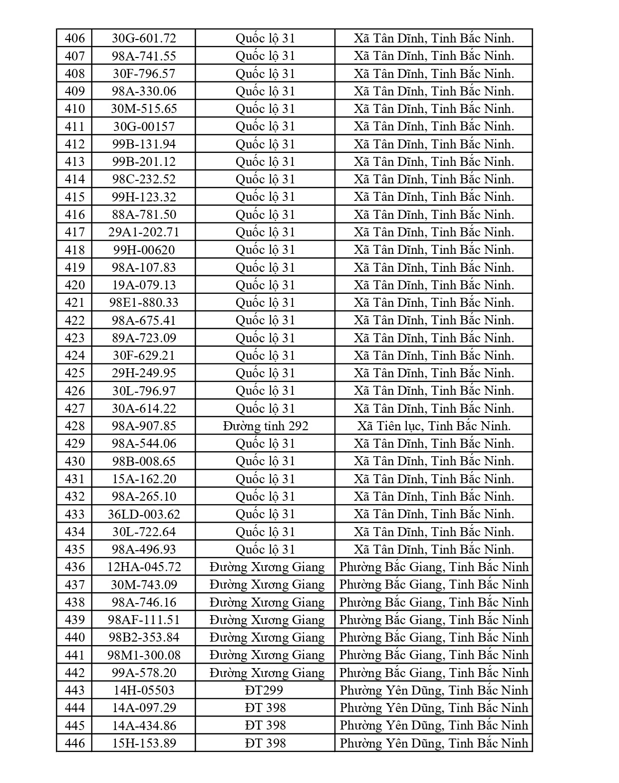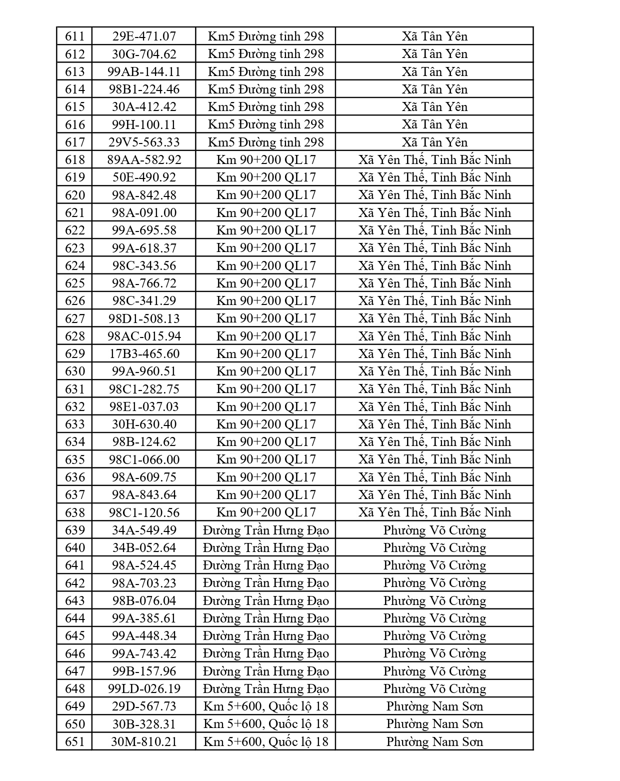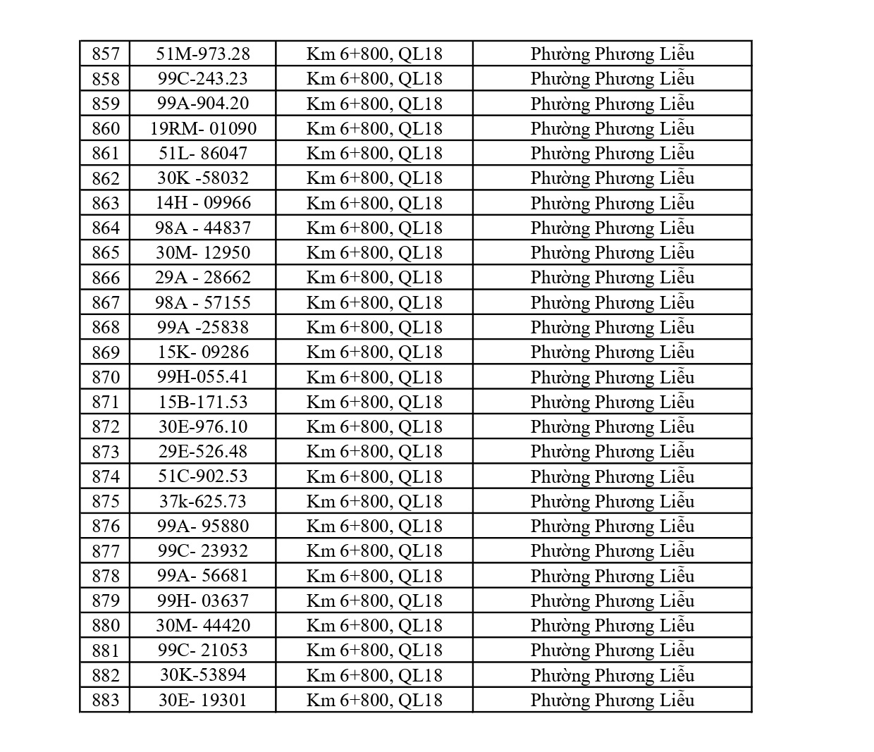 Công an tỉnh Bắc Ninh mới đây đã công bố danh sách các phương tiện vi phạm lỗi chạy quá tốc độ từ ngày 20/4/2026 đến ngày 26/4/2026 .