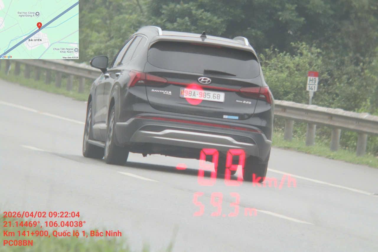 Phòng Cảnh sát giao thông Công an tỉnh Bắc Ninh thông báo, trong tuần từ ngày 20/4/2026 đến ngày 26/4/2026 , đã phát hiện 883 trường hợp vi phạm trật tự an toàn giao thông - lỗi chạy quá tốc độ qua hệ thống camera giám sát giao thông và phương tiện, thiết bị kỹ thuật nghiệp vụ.