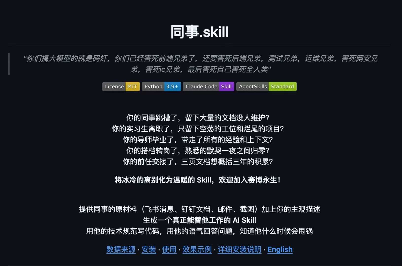 Một công cụ mã nguồn mở mang tên 同事.skill (colleague.skill) đã được ra mắt, cho phép phần mềm tự động thu thập nhật ký trò chuyện, email và tài liệu làm việc từ các nền tảng giao tiếp phổ biến như Feishu hay DingTalk. Hệ thống này sau đó sẽ nhân bản toàn bộ dữ liệu thành một tác nhân ảo độc lập. Ý tưởng cốt lõi vô cùng thực dụng nhưng cũng rất tàn nhẫn: hãy số hóa đồng nghiệp của bạn trước khi họ làm điều tương tự với bạn, nộp bản sao đó cho công ty và bảo vệ vị trí của chính mình khi đợt sa thải diễn ra.