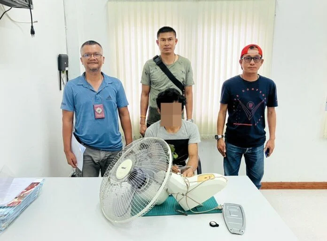 Khi đến nơi, cảnh sát tìm thấy một người đàn ông đang lảng vảng gần đó. Ngoại hình của anh ta trùng khớp với hình ảnh ghi lại từ camera giám sát. Với những bằng chứng khó chối cãi, tên trộm cuối cùng đã phải cúi đầu thừa nhận mình đã ăn trộm chiếc quạt. Danh tính của tên trộm được xác định là Charinphong, 28 tuổi.
