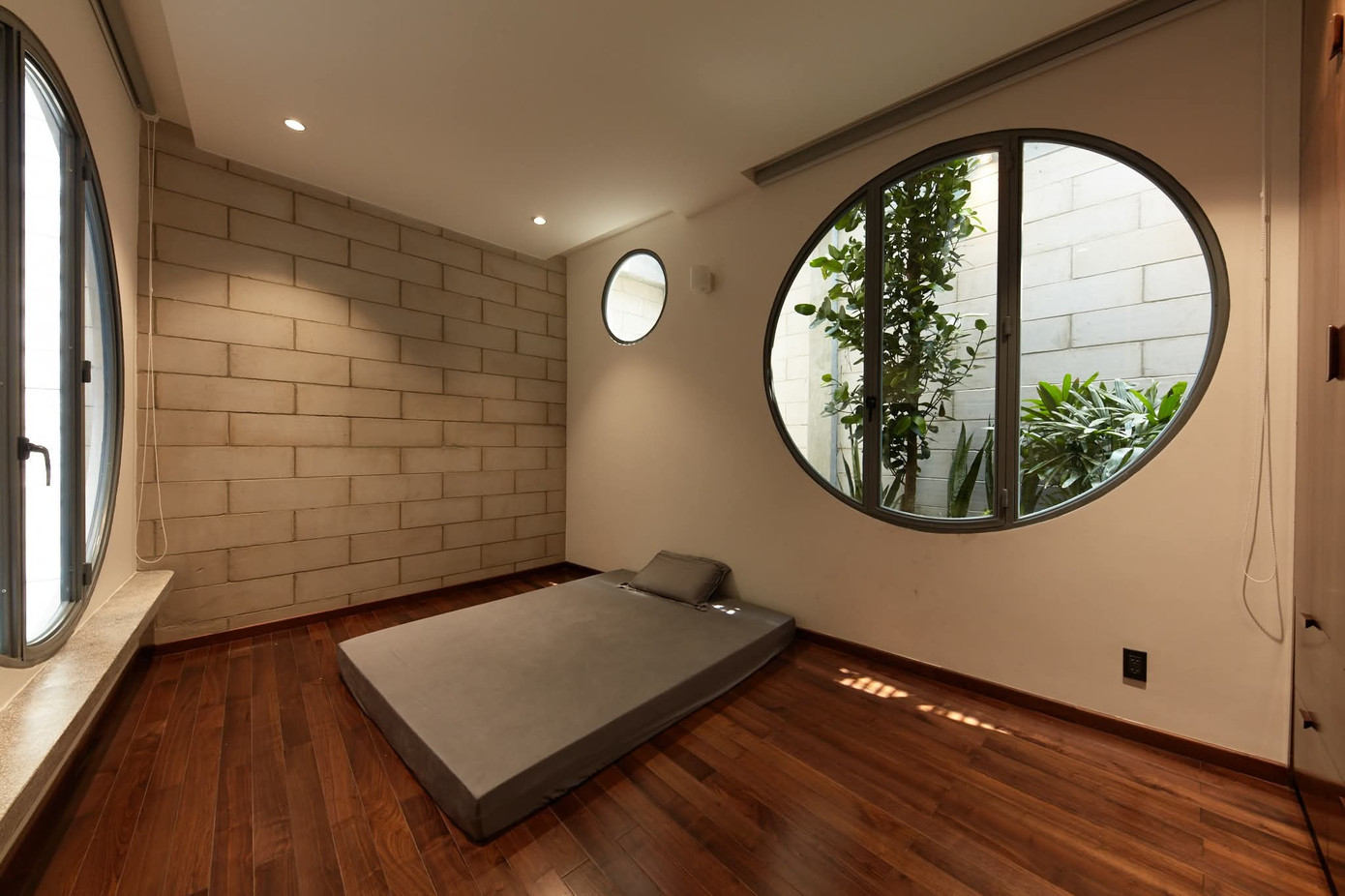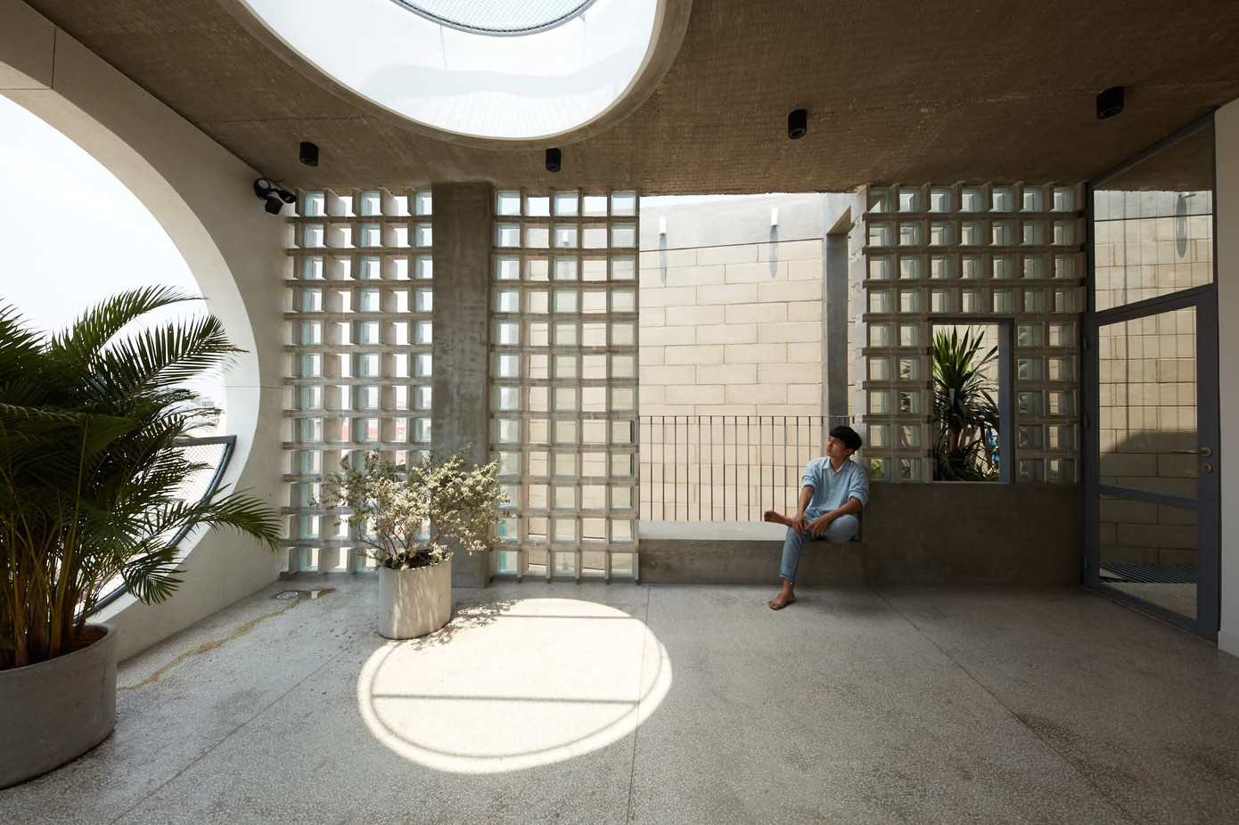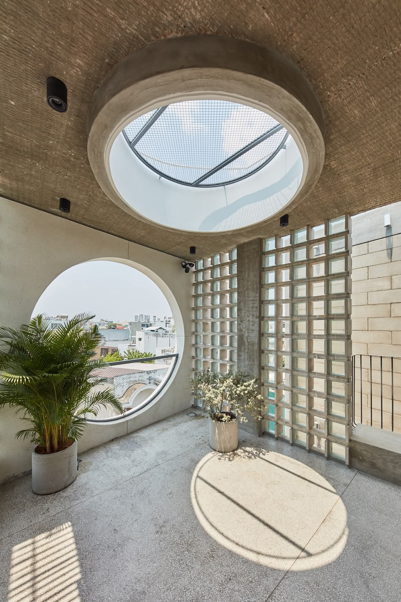 Các điểm nhấn hình học xuất hiện khắp nơi trong nhà, mang lại ngôn ngữ thiết kế thống nhất và tinh tế khi thực hiện vai trò lấy sáng và thông khí cho mọi ngóc ngách của không gian.