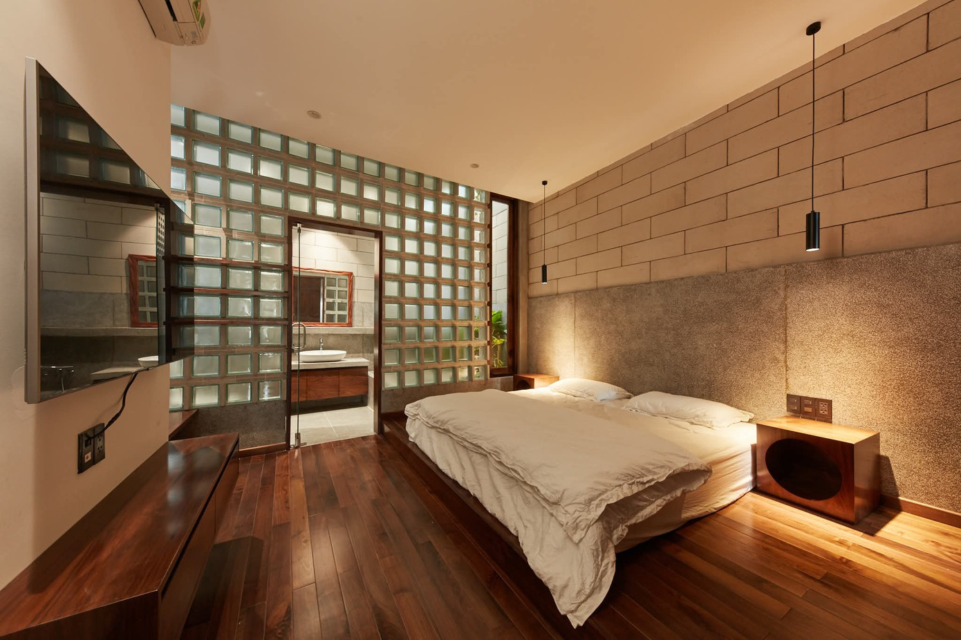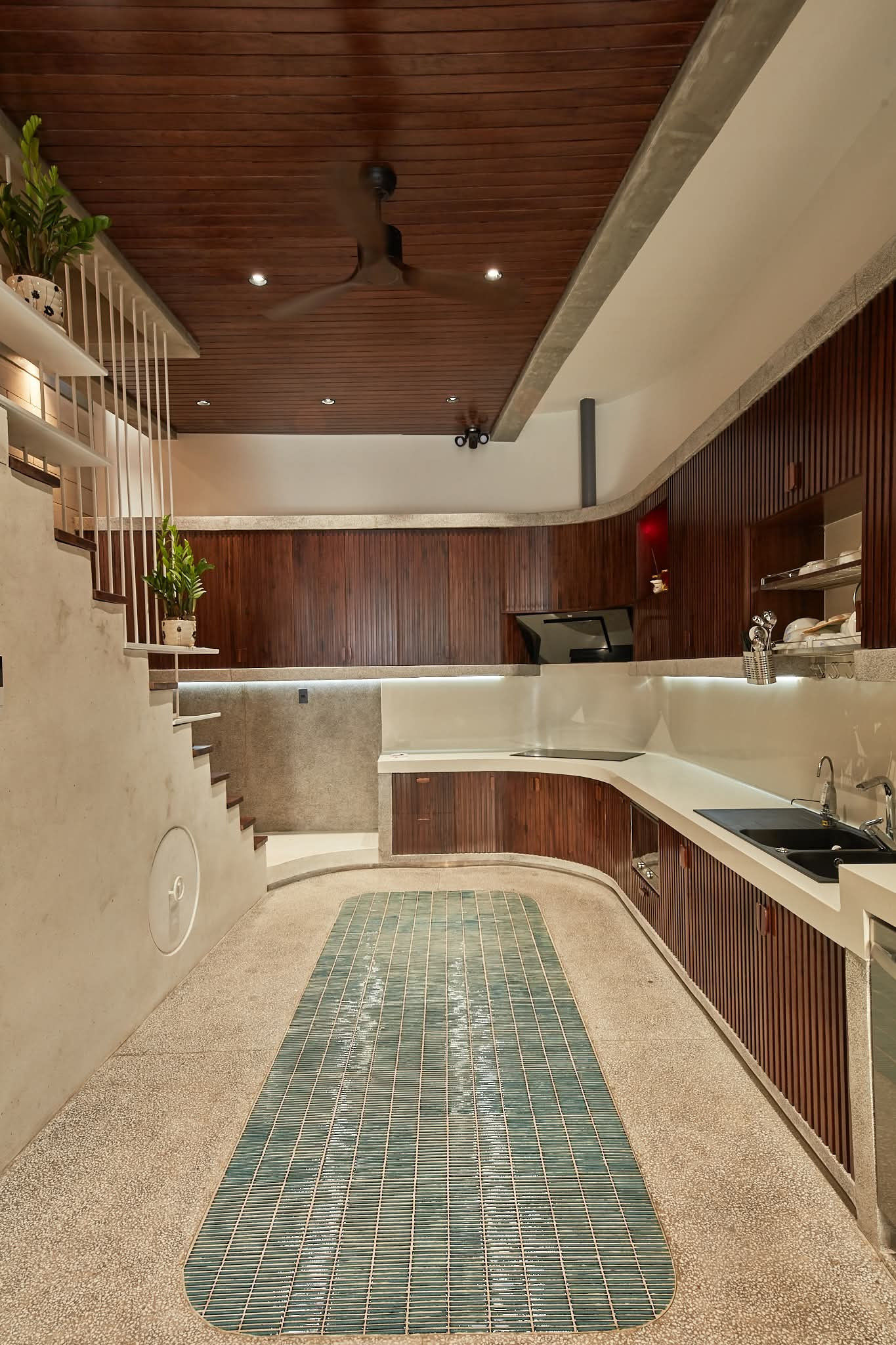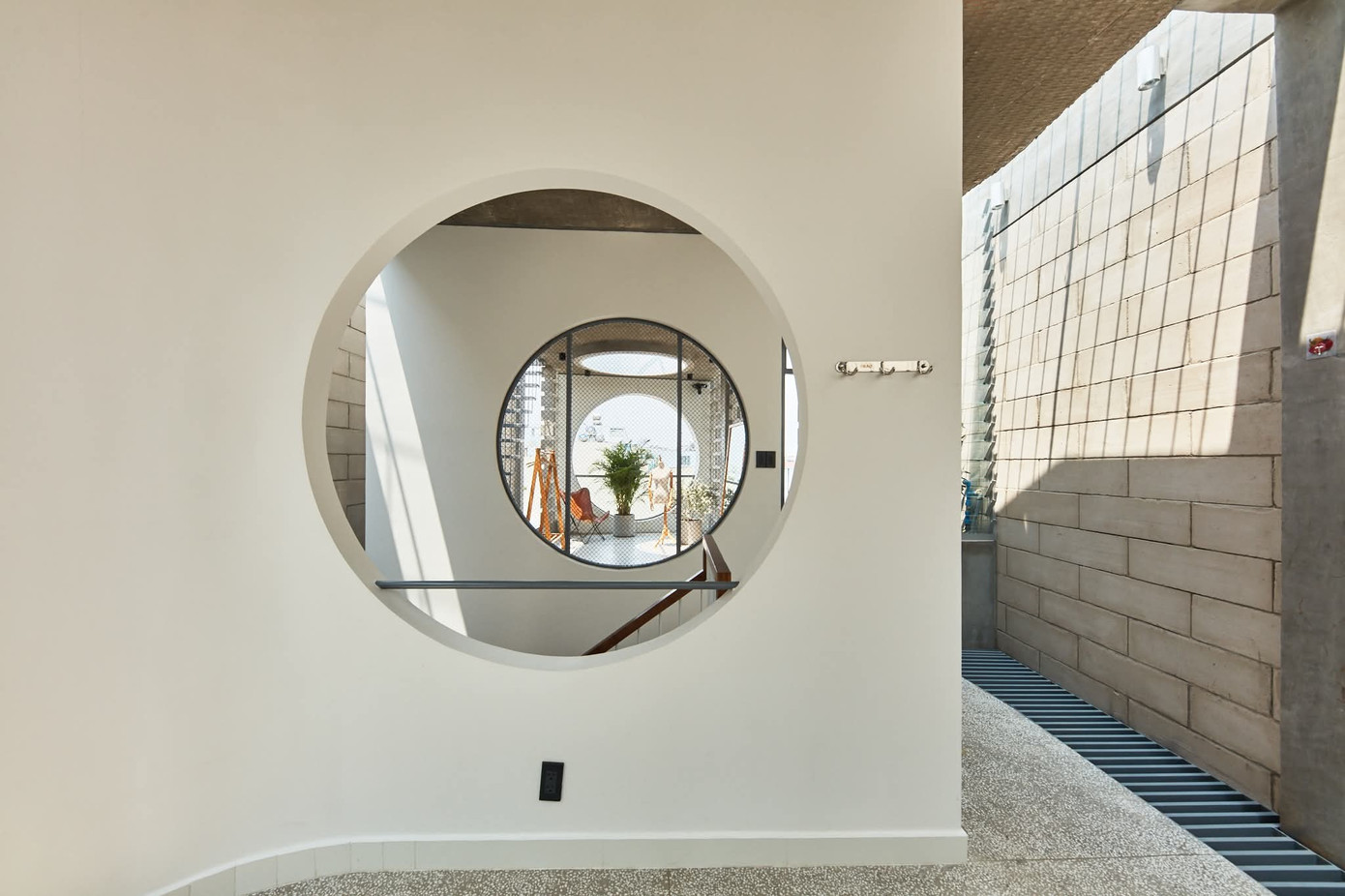Các điểm nhấn hình học xuất hiện khắp nơi trong nhà, mang lại ngôn ngữ thiết kế thống nhất và tinh tế khi thực hiện vai trò lấy sáng và thông khí cho mọi ngóc ngách của không gian.