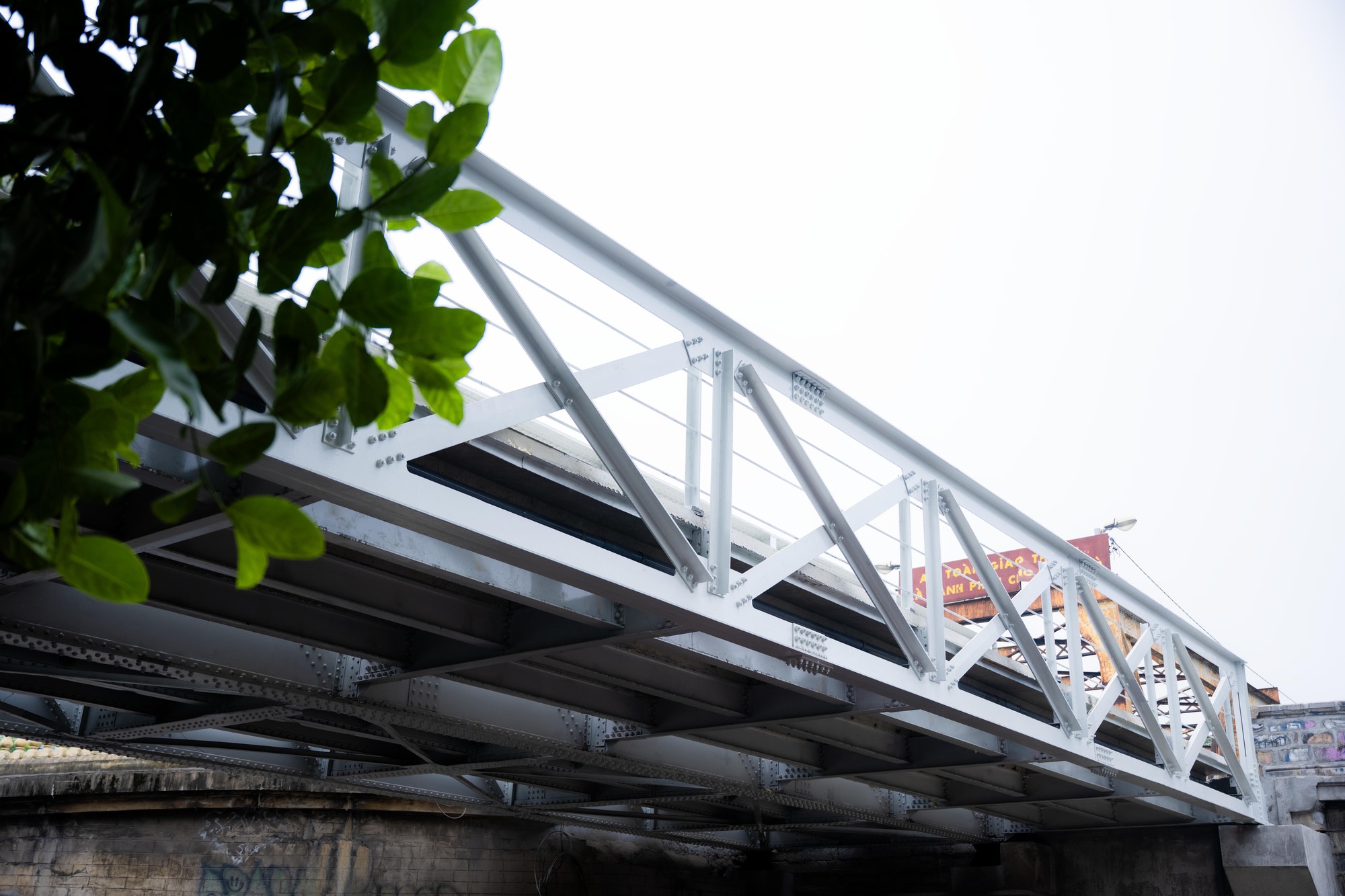 Ghi nhận trong ngày cuối cùng của dự án, khung thép đoạn gần ga Long Biên đã được tu sửa, làm sạch và sơn mới, tạo nên vẻ ngoài chắc chắn, đồng bộ hơn so với trước