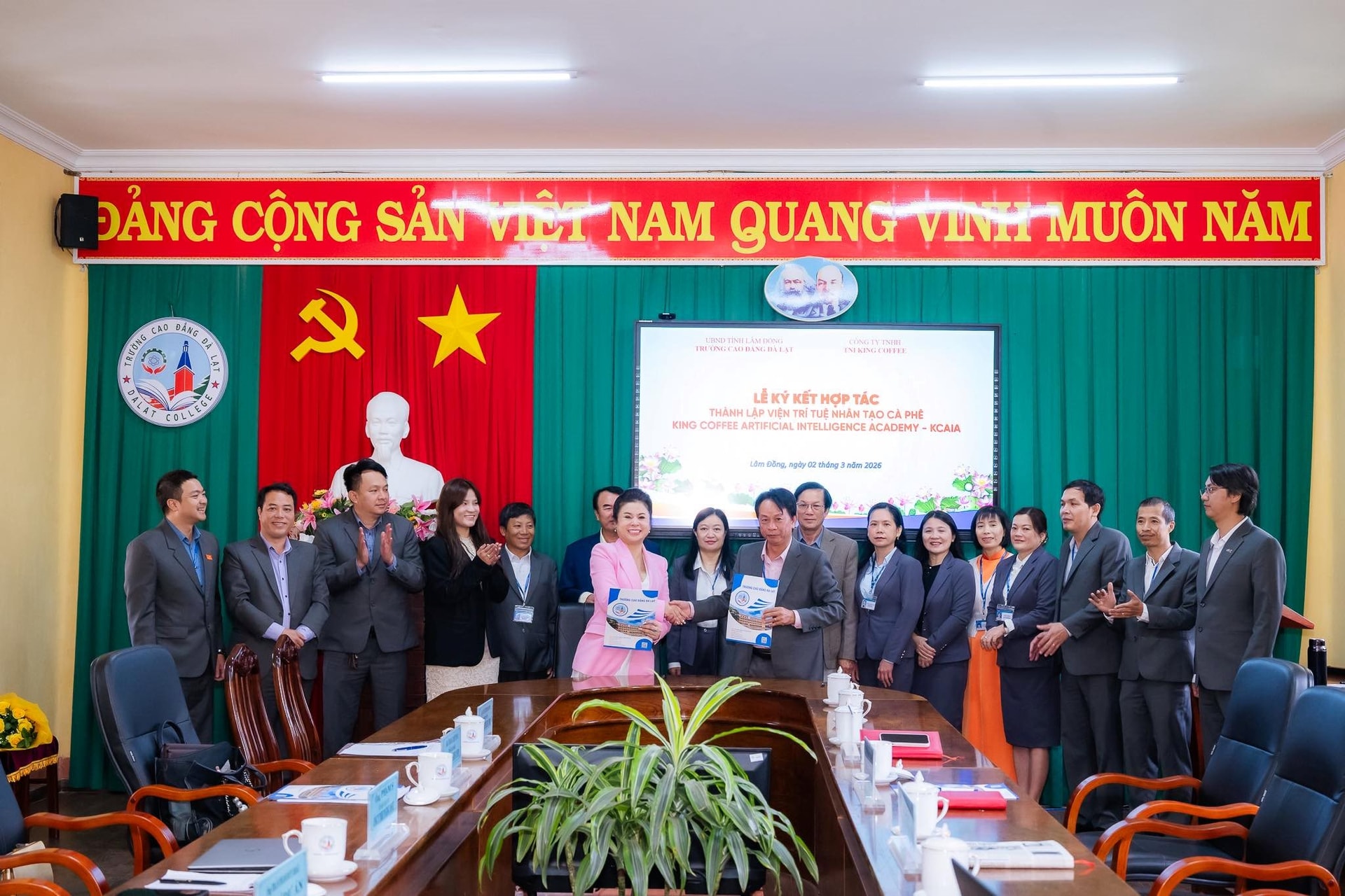 Lễ ký kết Bản ghi nhớ hợp tác giữa Công ty TNHH AI Coffee Academy của bà Lê Hoàng Diệp Thảo và Trường Cao đẳng Đà Lạt về việc hợp tác thành lập AI Coffee Academy (ACA) tại tỉnh Lâm Đồng.