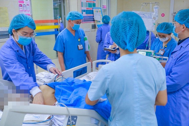 Các bác sĩ Bệnh viện E tiến hành can thiệp cho bệnh nhân. Ảnh: BVCC