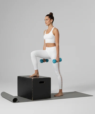 Nếu muốn nâng cao hiệu quả, bạn có thể thử bài tập bước lên bục. Động tác này mô phỏng chuyển động quen thuộc trong đời sống như leo cầu thang, giúp cơ thể thích nghi tốt hơn với các hoạt động hàng ngày.