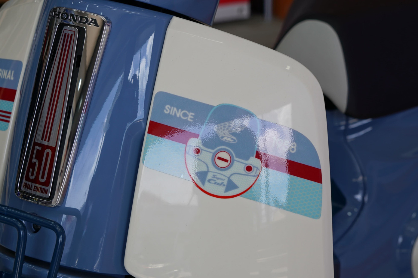 Ốp hông hai bên giờ cũng có nhận diện tên phiên bản Super Cub 50 Final Edition, thay vì chỉ xuất hiện ở dưới yên. Chắn bùn trước cũng có thêm tem logo 50 Final Edition.