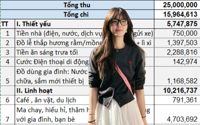 Bảng chi tiêu bị chê QUÁ NHIỀU của cô gái 25 tuổi ở Hà Nội