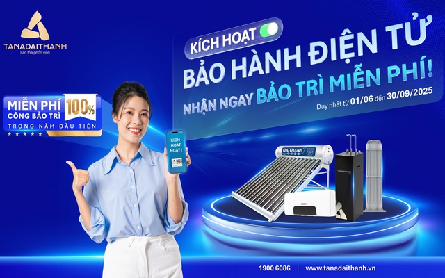 Đặc biệt, nhằm gia tăng trải nghiệm hậu mãi và khuyến khích khách hàng sử dụng bảo hành điện tử, từ ngày 01/06 đến 30/09/2025, Tập đoàn Tân Á Đại Thành triển khai chương trình ưu đãi bảo trì miễn phí trong năm đầu tiên sử dụng (1 lần cho 1 sản phẩm) dành cho khách hàng kích hoạt bảo hành điện tử cho các sản phẩm: Máy lọc nước RO, Bình nước nóng, Máy nước nóng năng lượng mặt trời, Bộ lọc đầu nguồn. Đây là một trong những hoạt động thiết thực nhằm nâng cao chất lượng chăm sóc khách hàng, đồng thời khẳng định cam kết của Tân Á Đại Thành trong việc chuyển đổi số và hiện đại hóa dịch vụ hậu mãi.
