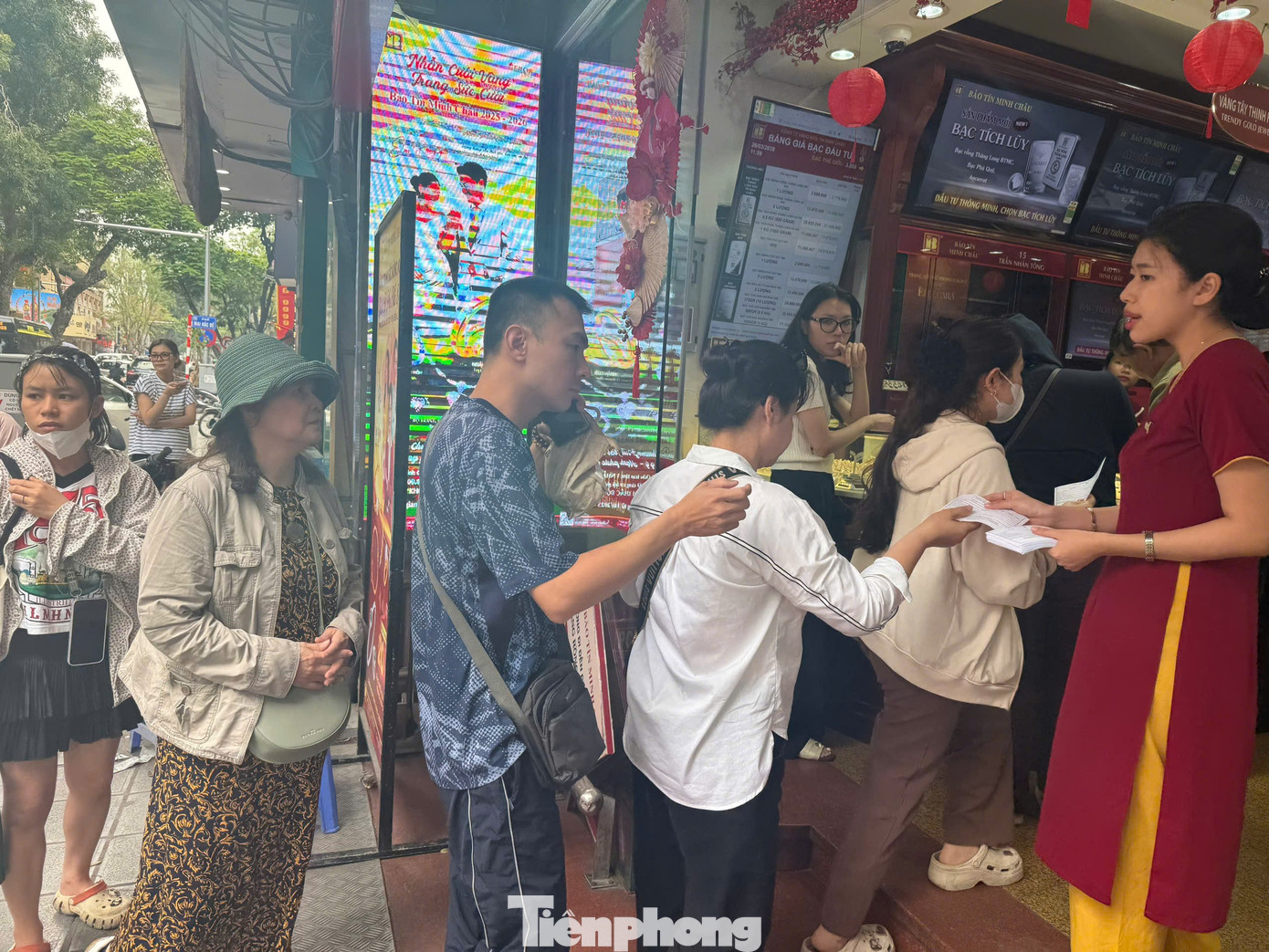 Khách xếp hàng chờ mua vàng tại Bảo Tín Minh Châu, đường Trần Nhân Tông, Hà Nội.