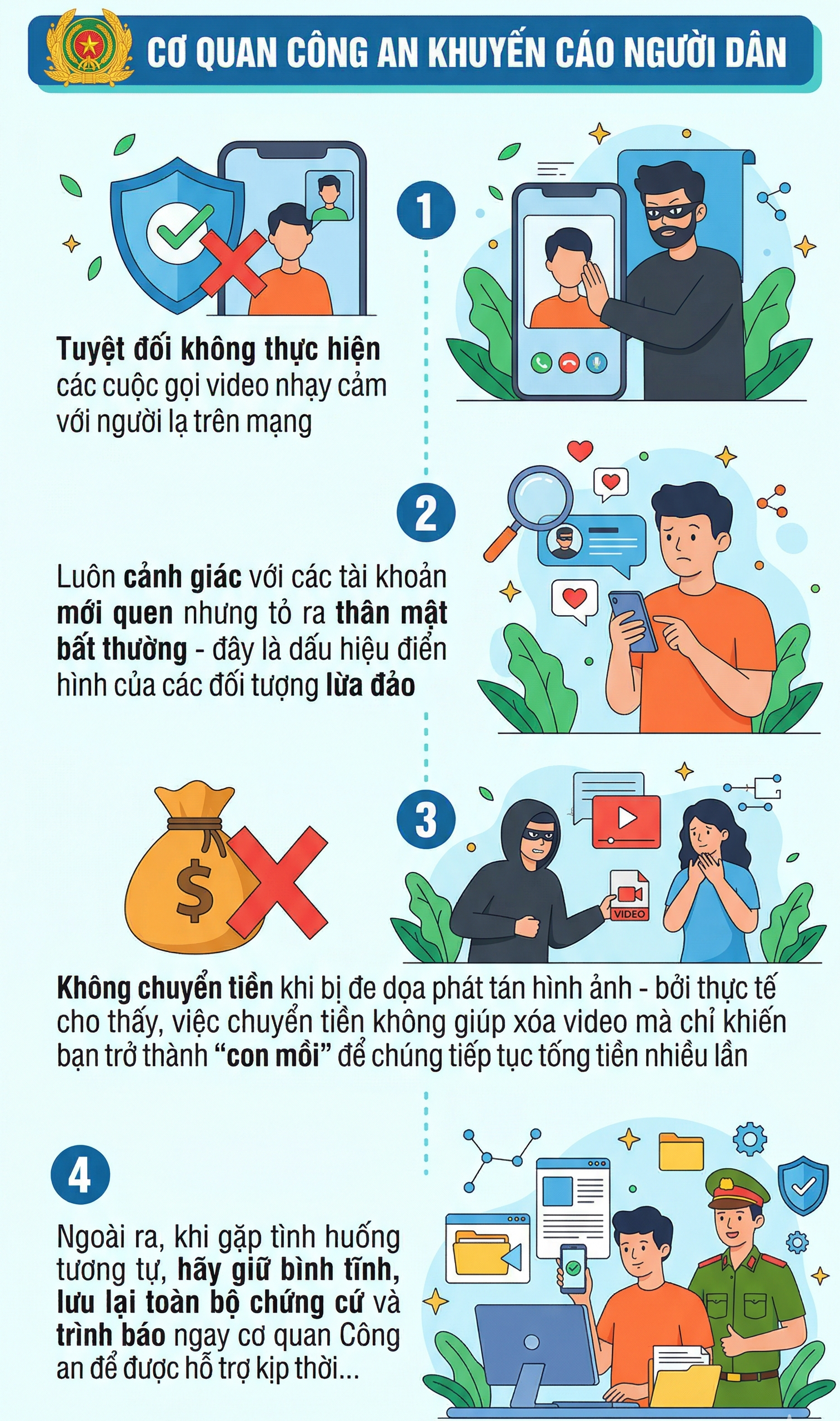 Ngay sau đó, Phan Ngọc Gia Huy sử dụng video đe dọa phát tán cho gia đình, bạn bè, đồng nghiệp của nạn nhân nếu không nhận được tiền “chuộc”. Hiện vụ việc đang được cơ quan Công an tiếp tục điều tra làm rõ.