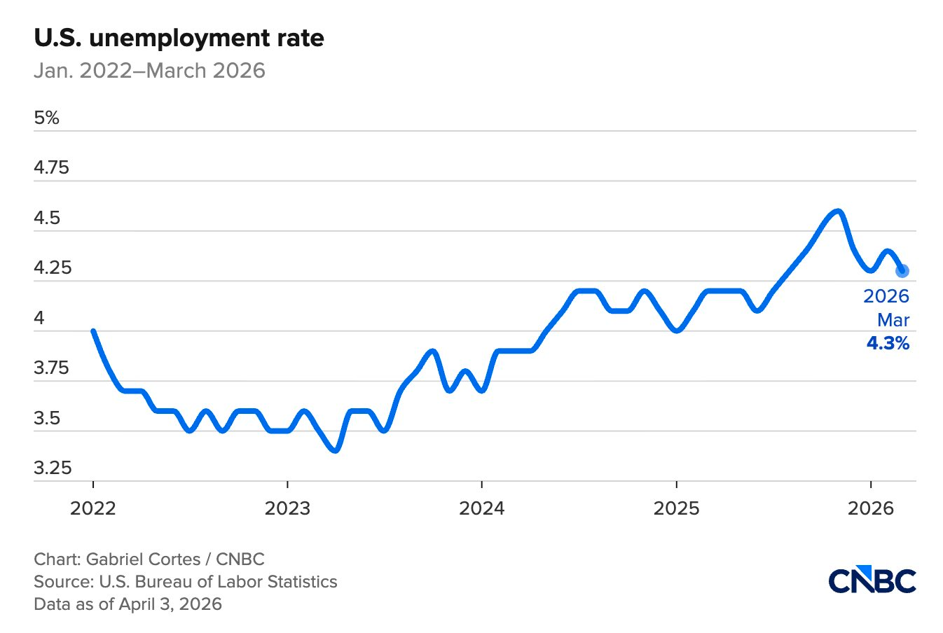 Tỷ lệ thất nghiệp giảm nhẹ xuống 4,3%, nhưng phần lớn do lực lượng lao động giảm mạnh.