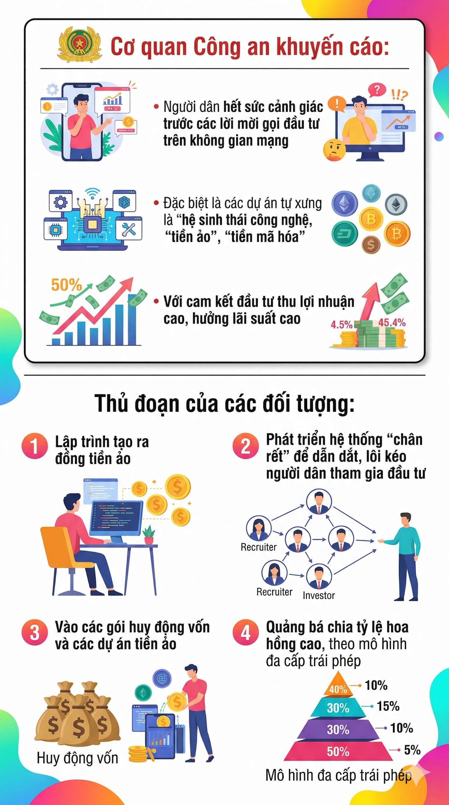 Để tạo dựng niềm tin, chiếm đoạt tiền của nhà đầu tư, Vương Lê Vĩnh Nhân đã chỉ đạo đưa ra các thông tin quảng cáo về các đồng tiền mã hóa không đúng sự thật, thực hiện các giao dịch tạo cung cầu giả tạo, thao túng, điều chỉnh giá theo yêu cầu của Nhân.