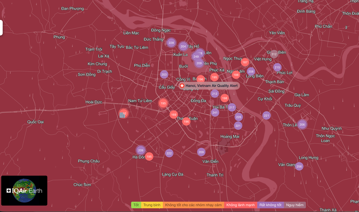 Từ tối 7/12, bầu trời Hà Nội mờ đục, người dân cảm nhận rõ sự ngột ngạt, cay mắt, khó thở khi ra đường. Chỉ số chất lượng không khí (AQI) của Thủ đô đã liên tục tăng, đỉnh điểm chạm ngưỡng 231 (mức rất có hại), đưa Hà Nội lên vị trí ô nhiễm nhất thế giới.