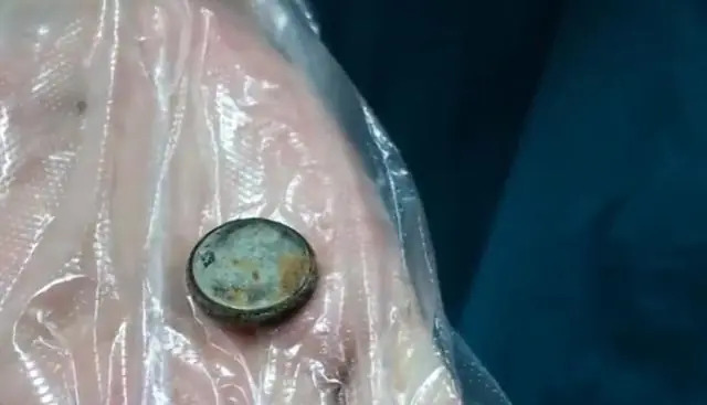 Viên pin cúc áo mà bé trai 3 tuổi của chị Linlin nuốt phải gây nguy hiểm dù tới bệnh viện ngay sau đó