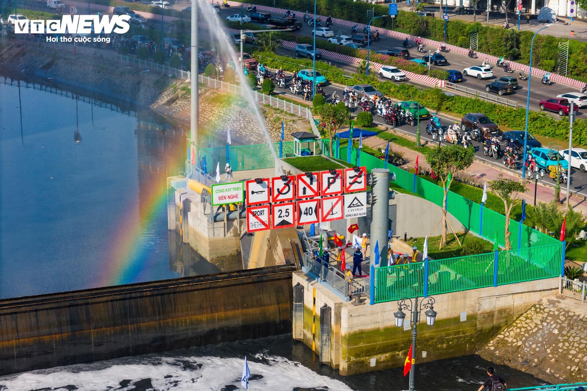 Riêng cống Bến Nghé được thiết kế theo dạng cống âm, với toàn bộ hệ thống cửa van bố trí chìm dưới mặt nước. Công trình hoạt động như một “lớp phòng tuyến”, vừa ngăn triều từ bên ngoài, vừa hỗ trợ bơm nước ra sông, tạo điều kiện tiếp nhận và tiêu thoát nước mưa từ nội đô.